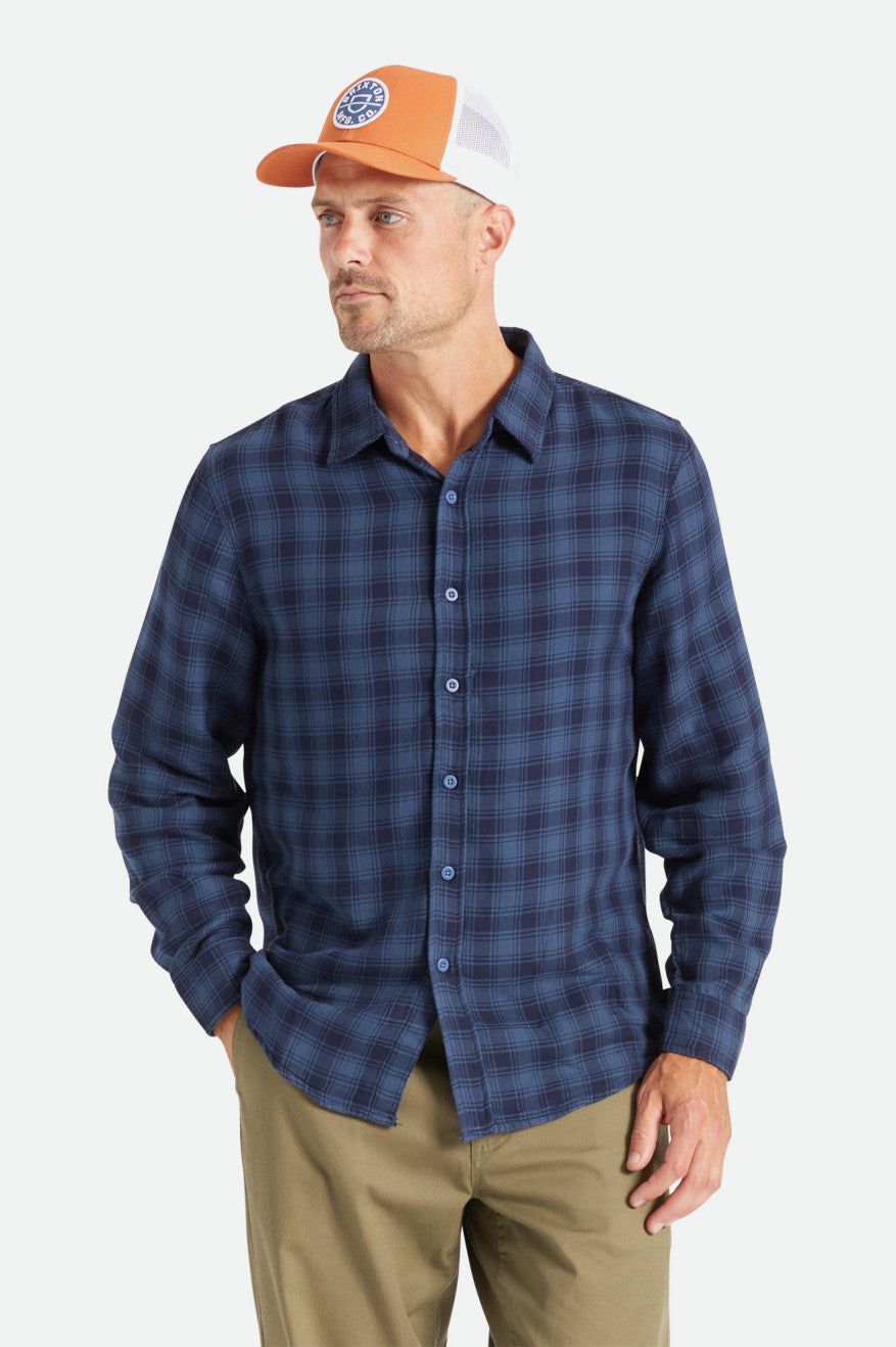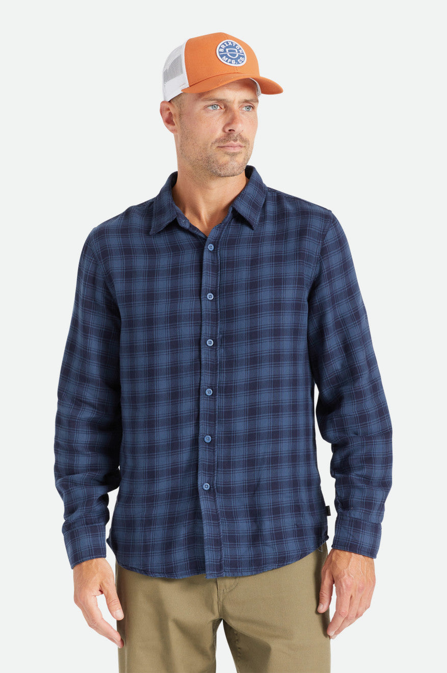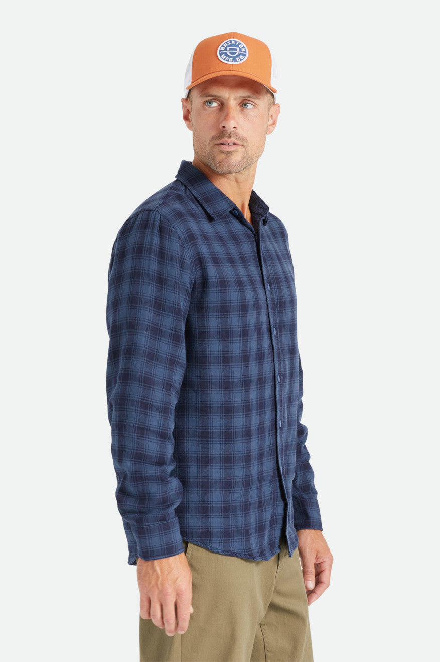 This is an effortless flannel designed with custom double weave yarn-dye twill. It has a standard fit with a curved hem making it an easy shirting piece. Clean seams and a heavy brushed finish keep it textured yet tidy.