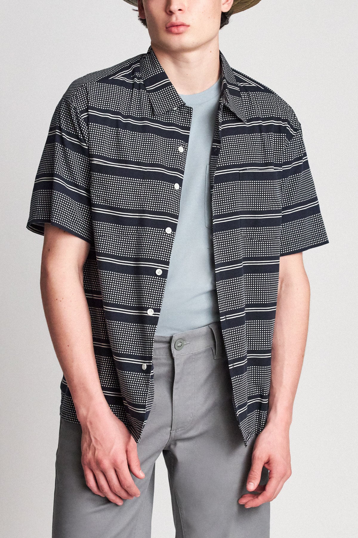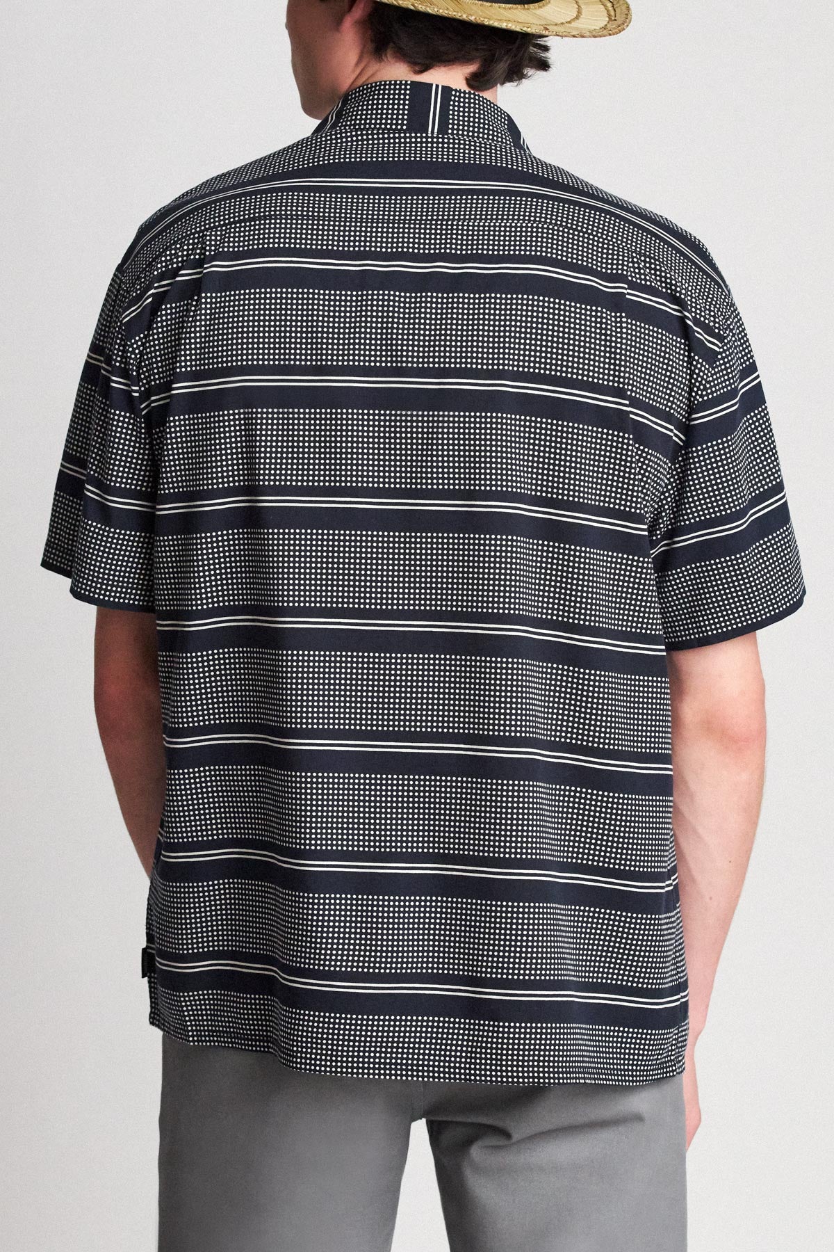 It features two chest pockets, a straight-cut hem, and a woven Brixton label at side seam.