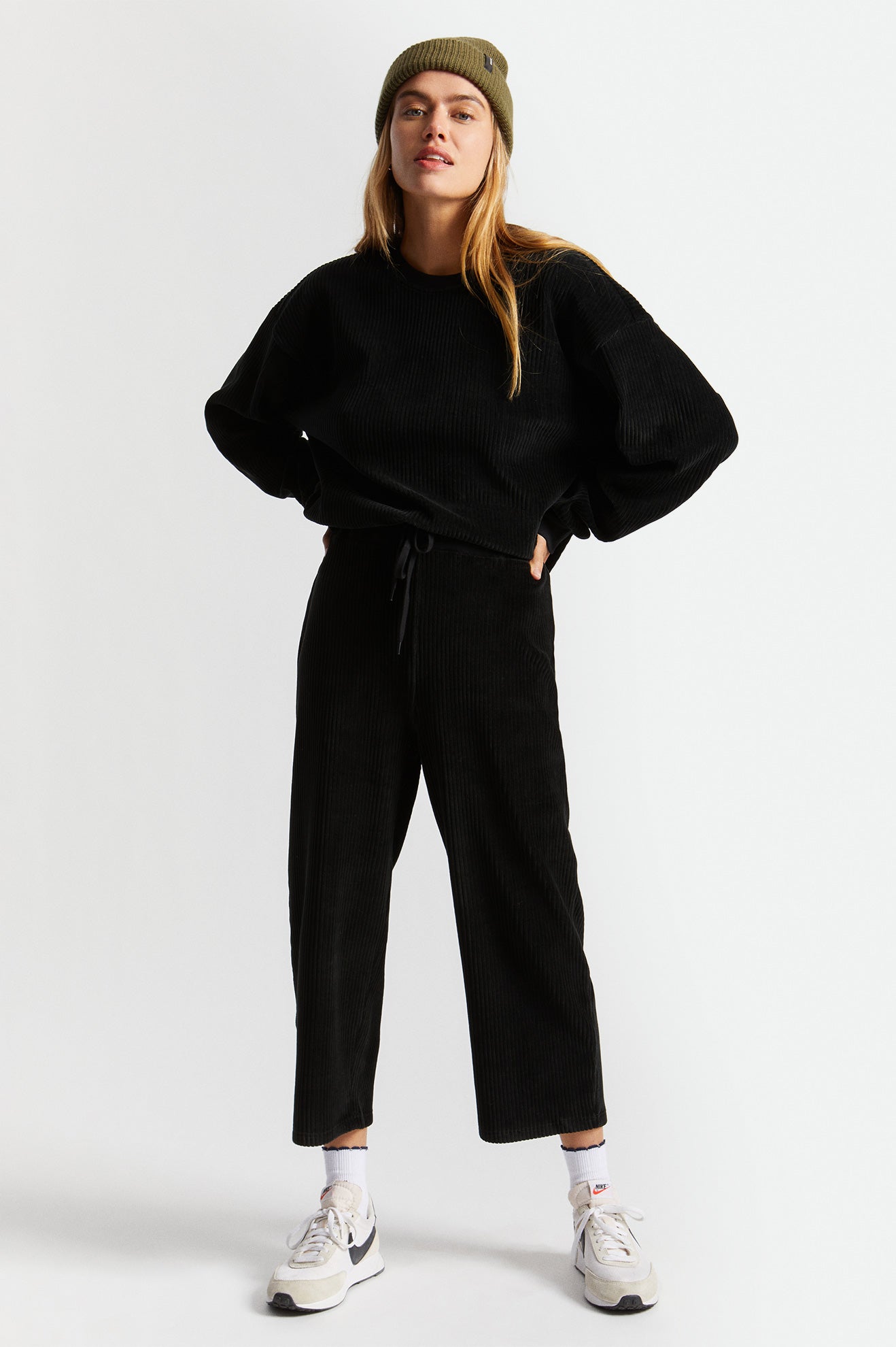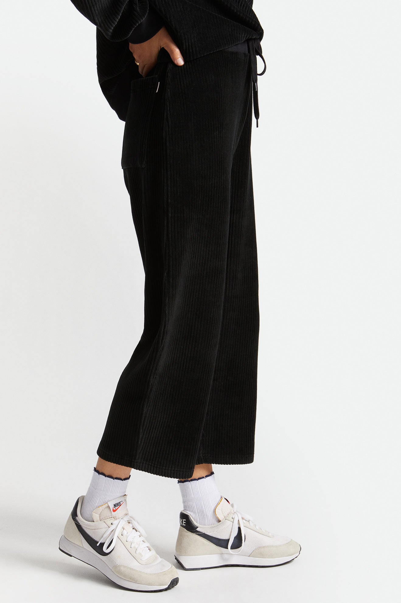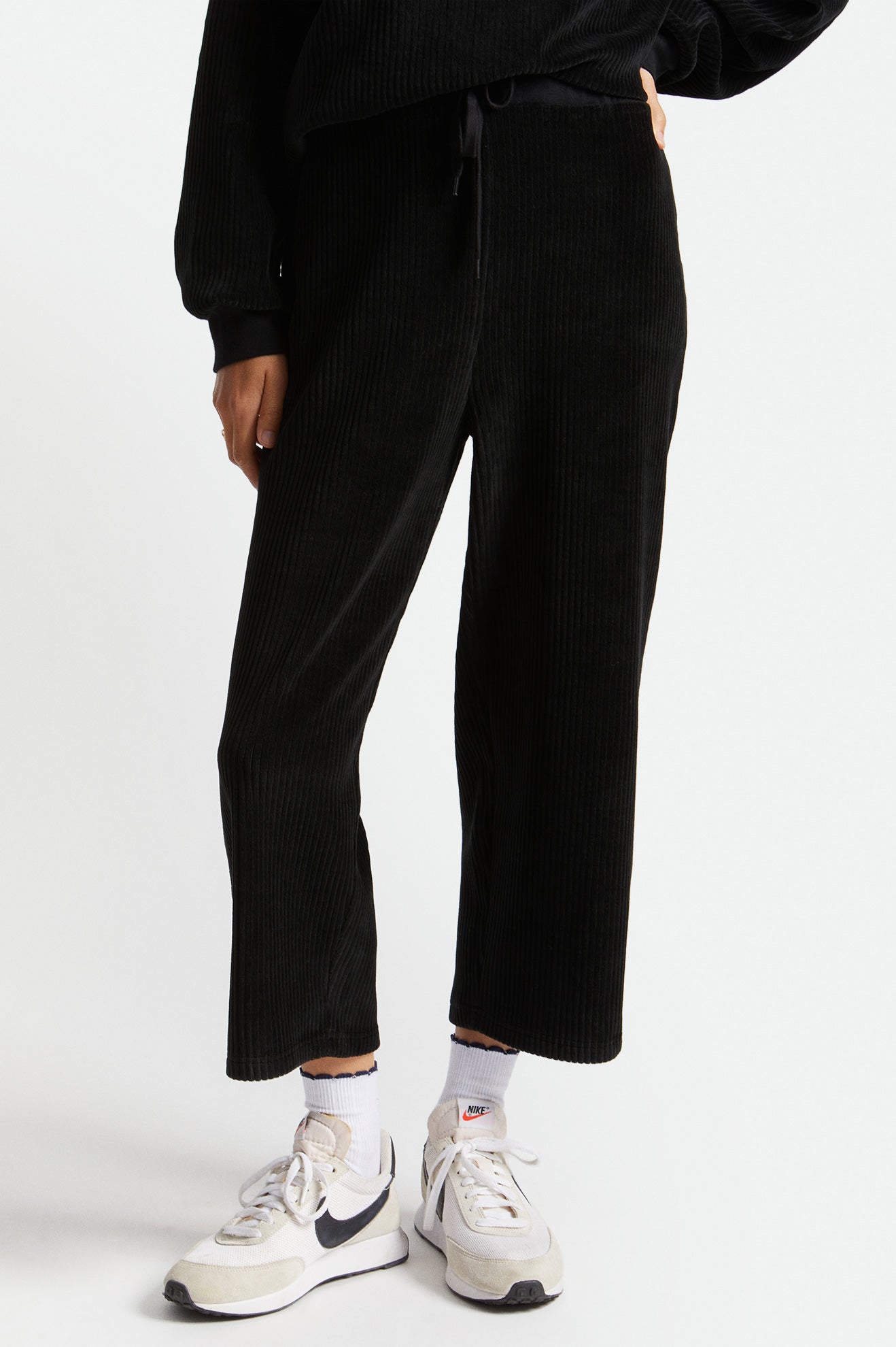 Made of a soft cotton blend, the Dazed Crop Pant is an easy fitting, wide leg cropped pant with a drawstring waist. This collection features the look of corduroy, but the comfort of stretch velour. Easy to wear in the house or when going about your day-to-day activities.