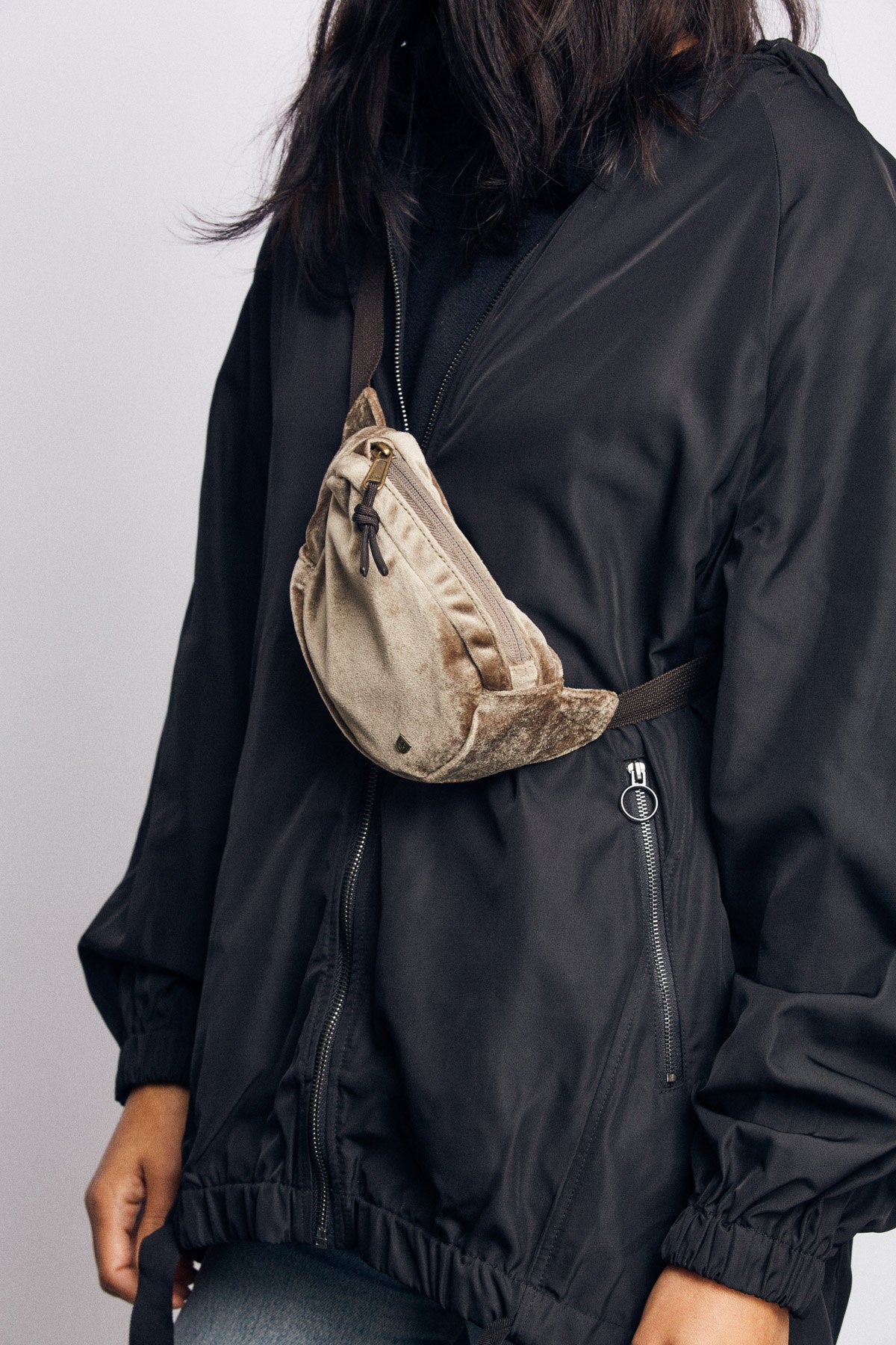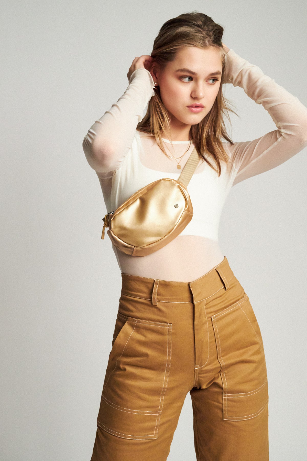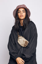 A faux-leather hip/shoulder pack with an 8mm. metal Brixton B-Shield.