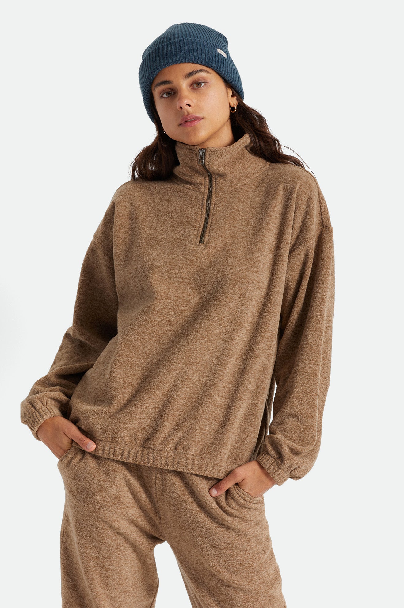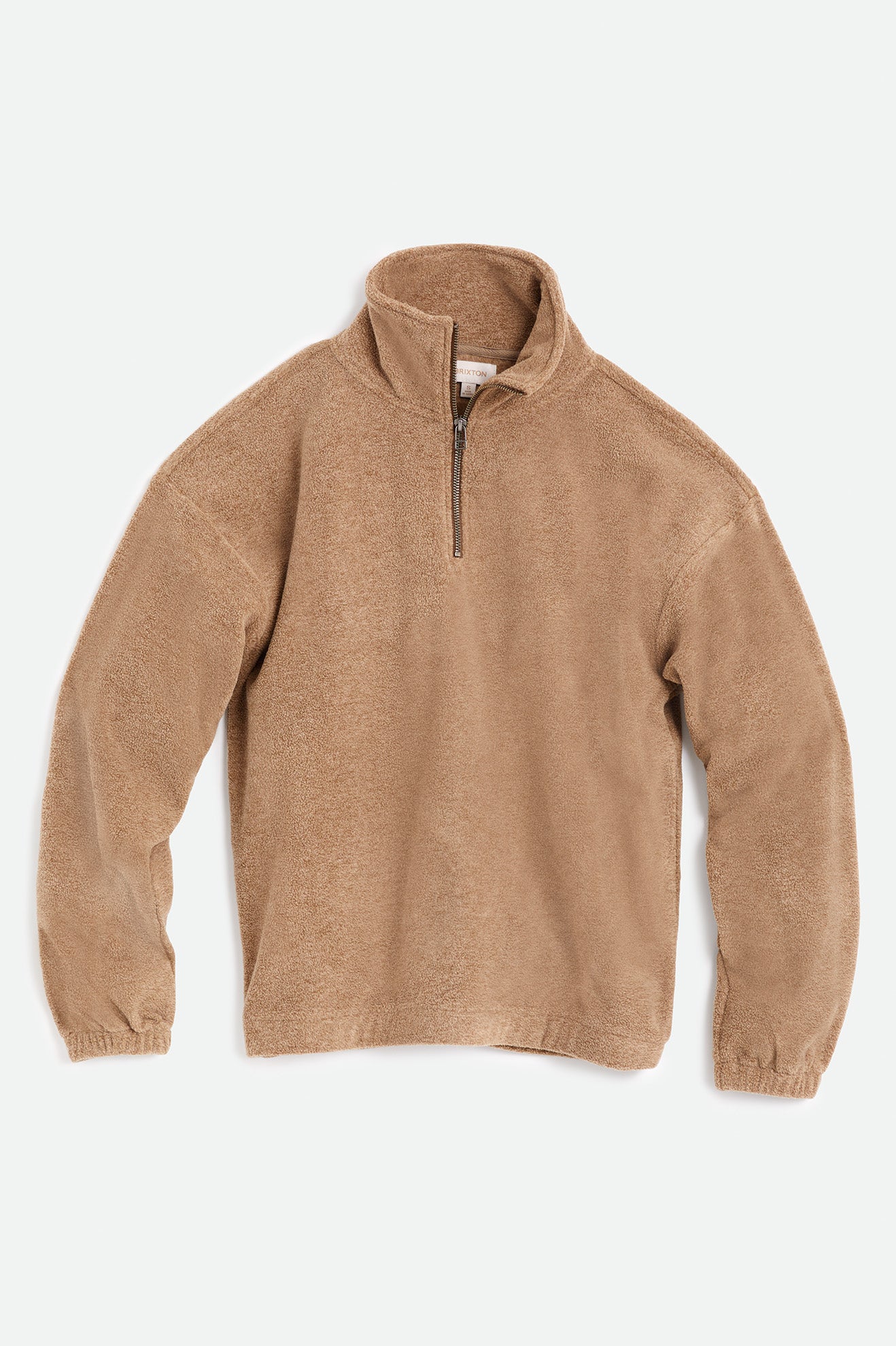 The Derby 1/4 Zip serves up a relaxed fit to keep you warm and comfortable. Super soft it features elastic encased sleeve cuffs and waistband, quarter-zip high front mock neck, a drop shoulder, and a logo flag label at the sideseam.