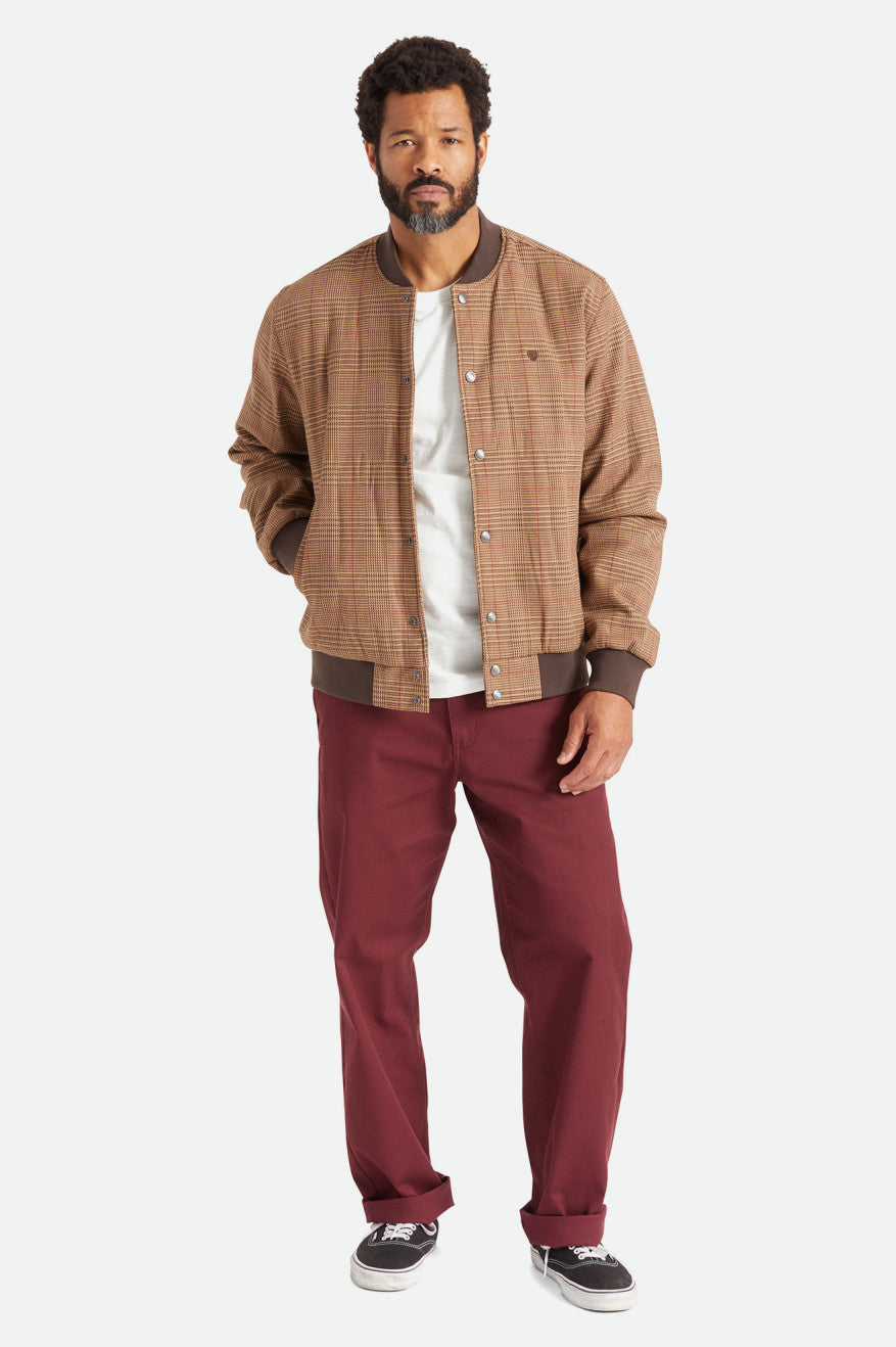 The Dillinger Bomber Jacket is an elevated outer layer that combines a military-inspired silhouette with textured menswear styling. Featuring a recycled poly taffeta lining and light synthetic fill, it provides just the right amount of warmth when the weather drops. The ribbed collar and hemlines paired with a standard bomber fit make this a versatile piece for dressing up or down.