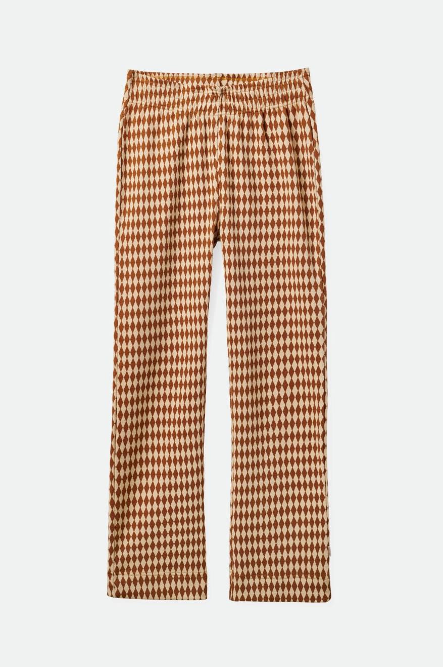 The Dominica Pant is a slim-cut, straight-leg bottom with an easy pull-on elastic waist. Built with a thick cotton blend in a retro diamond knit, they make a match with the Dominica Short Sleeve Shirt.