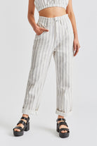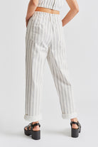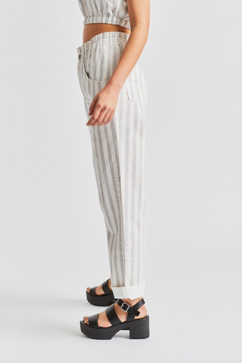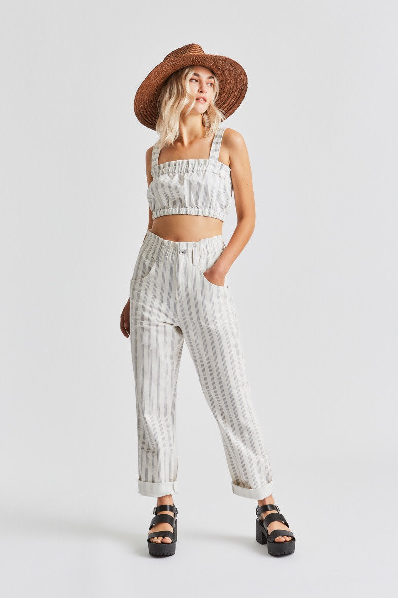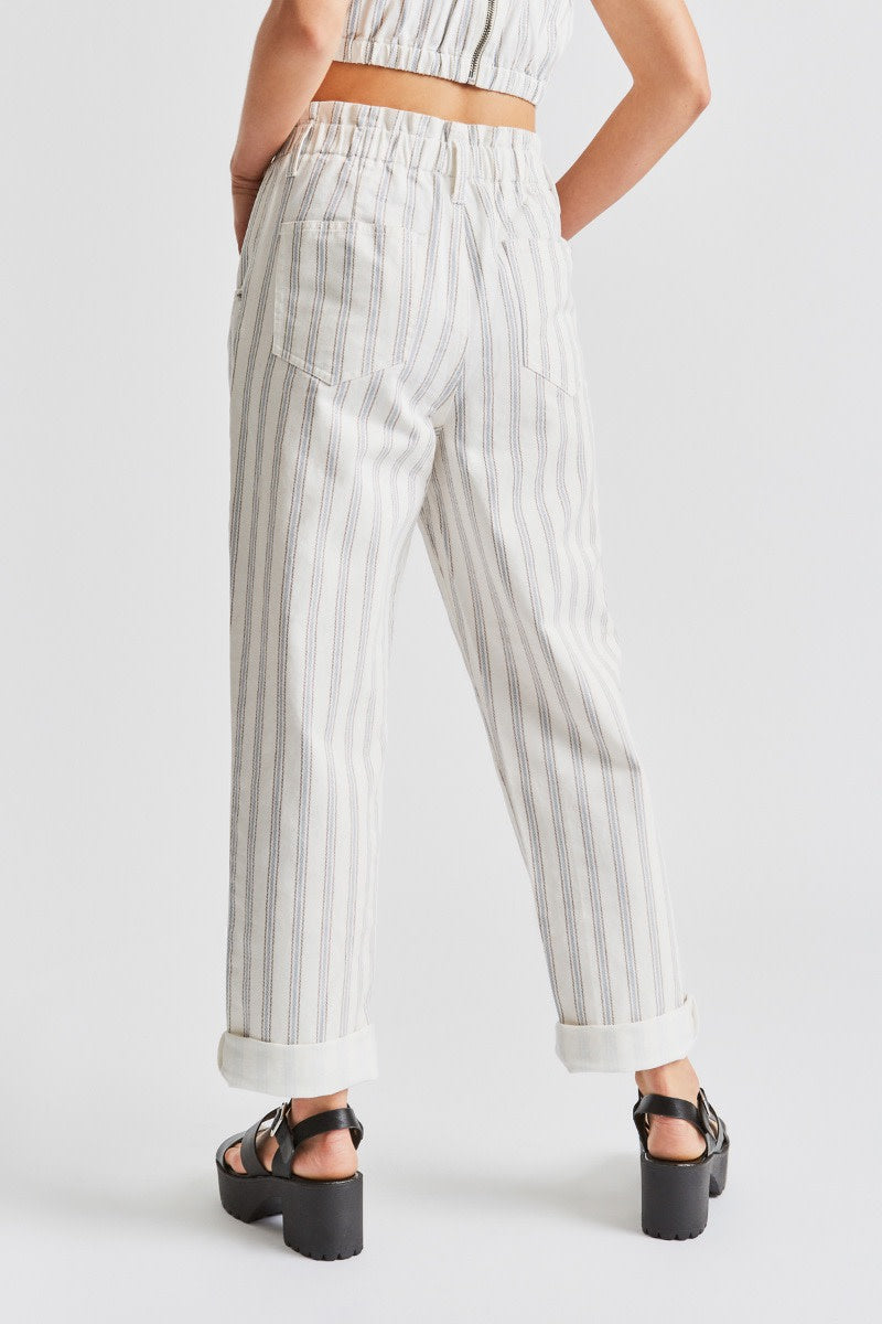 The baggy fit Doyle Pant is designed with a high-waisted fit and elastic waistband for ease and comfort. Made of cotton twill and great for the days you want to look put together, but feel like wearing sweats. The elastic waist lets you wear it as high or as low as you want, and it looks great with an added belt or worn on it's own. The paper bag waist can be shown off by tucking in tops, or it's the perfect way to wear any of our crop tops. Looks cute with the leg hem cuff rolled up.