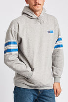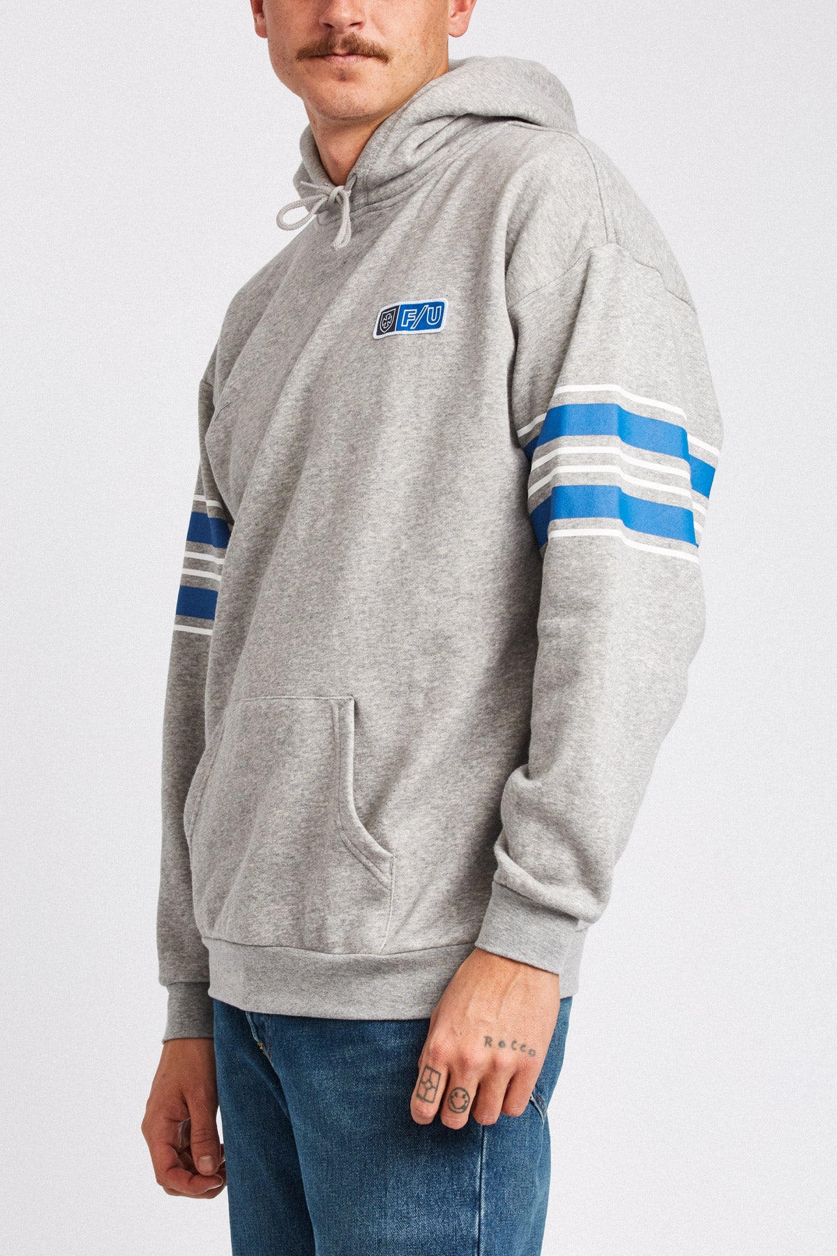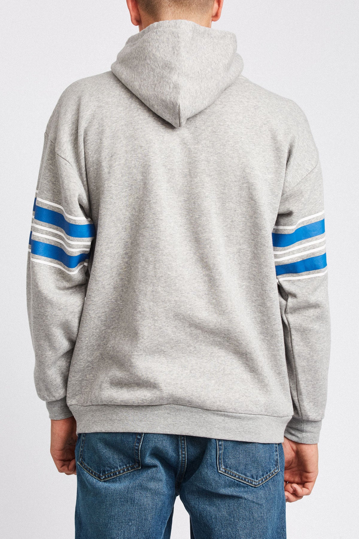 A 330-gram hooded pullover sweatshirt that features set-in sleeves, drawcord-adjustable hood, screenprinted stripe pattern at both sleeves, and an woven patch at left chest.