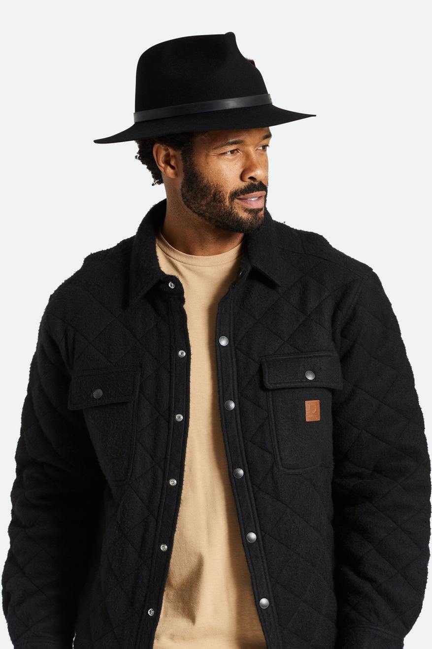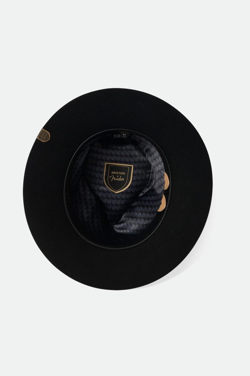 The Fender Jaguar Reverb Fedora features a classic fedora silhouette with added details to make this a truly premium style. The bands feature a Brixton & Fender logo pin, finished with a feather. While on the interior you’ll find a signature lining design, and Fender Jaguar guitar-inspired details, like two pick pockets in the band.