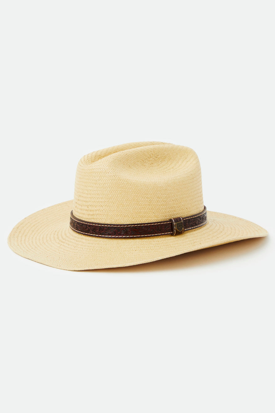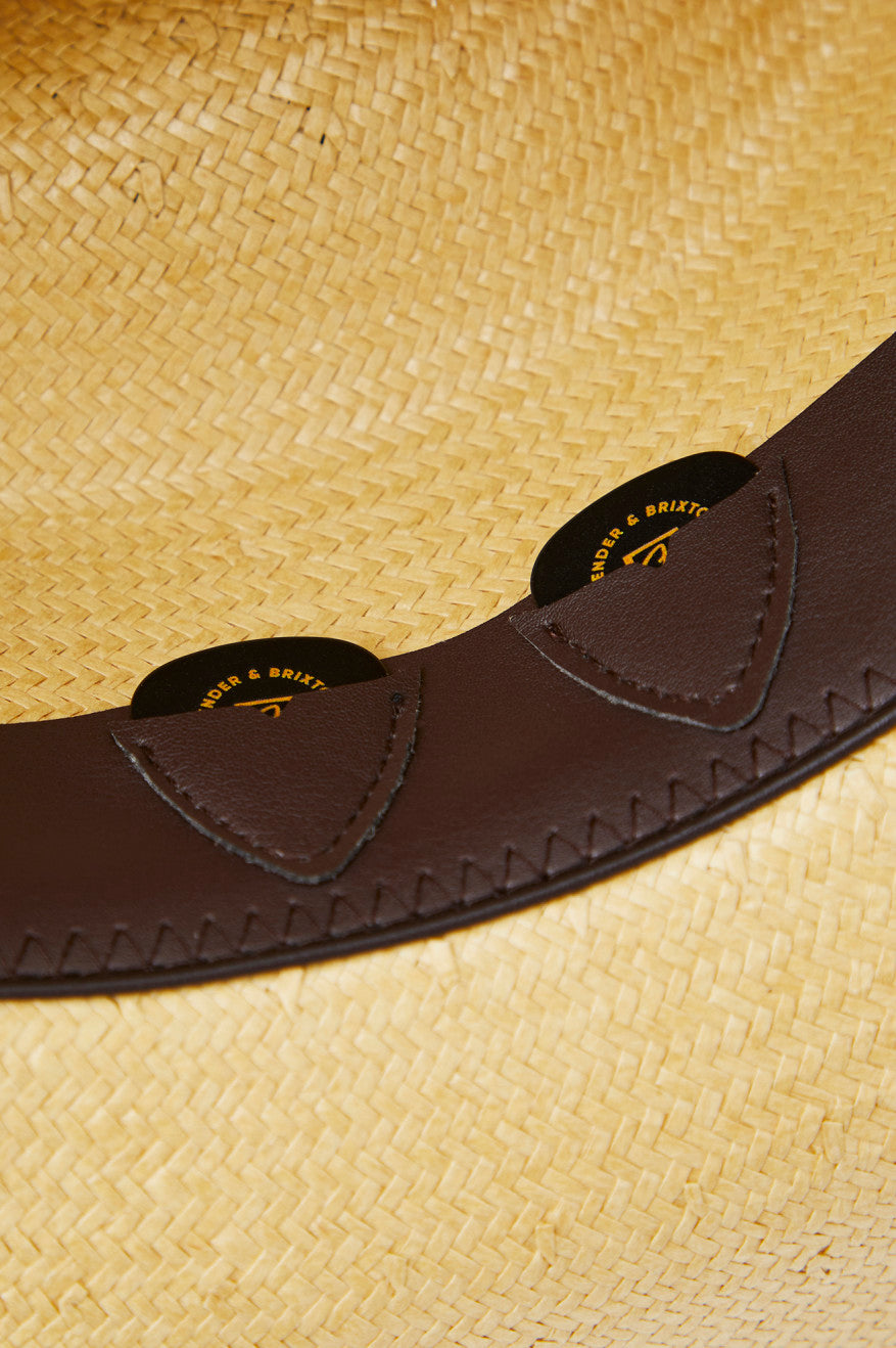 The Fender Paycheck Cowboy Hat is a wide brimmed hat offered in felt and straw. Featuring a debossed leather band and a metal Brixton/Fender pin, its details bring a sophisticated level of finishing. With guitar pick holders in the sweatband, it's always ready for a gig, or friendly jam.