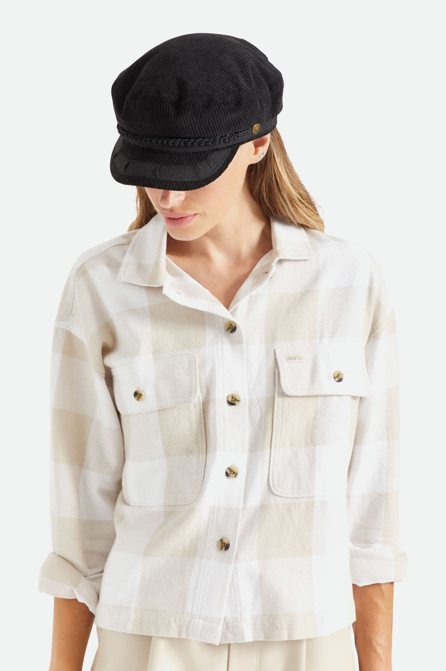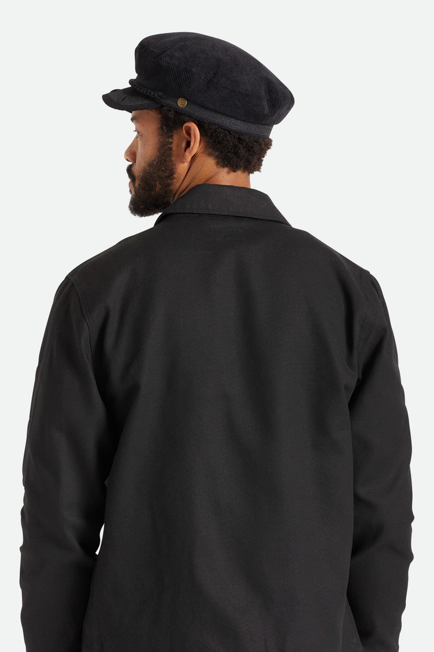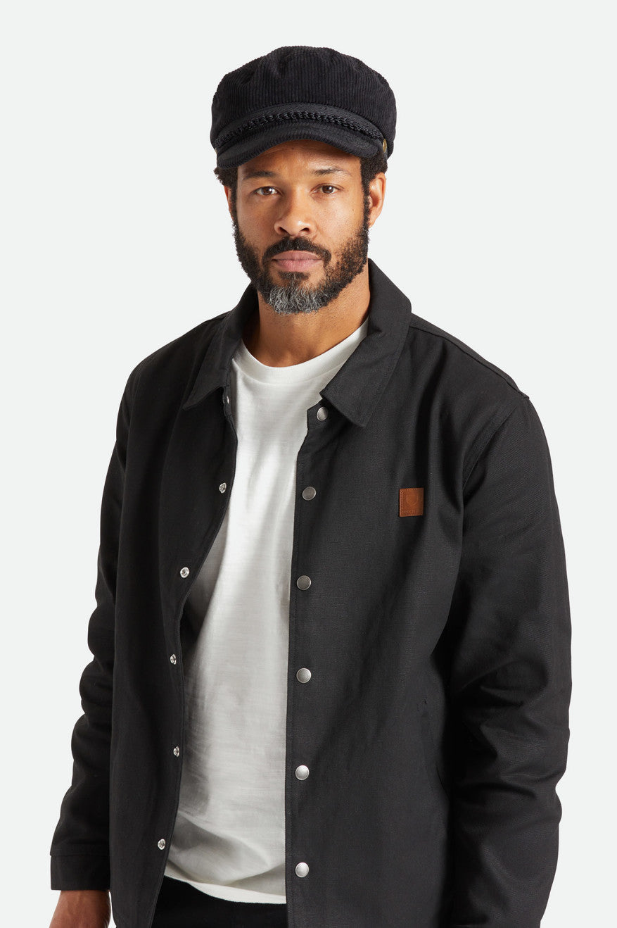 An elevated form of the Fiddler inspired by the reserve. Crafted from durable cotton corduroy or a warm wool blend, this is a short-brim fisherman cap with confidence. Accented with a braided cord, metal headwear pin and a webbing-inspired top strap.
