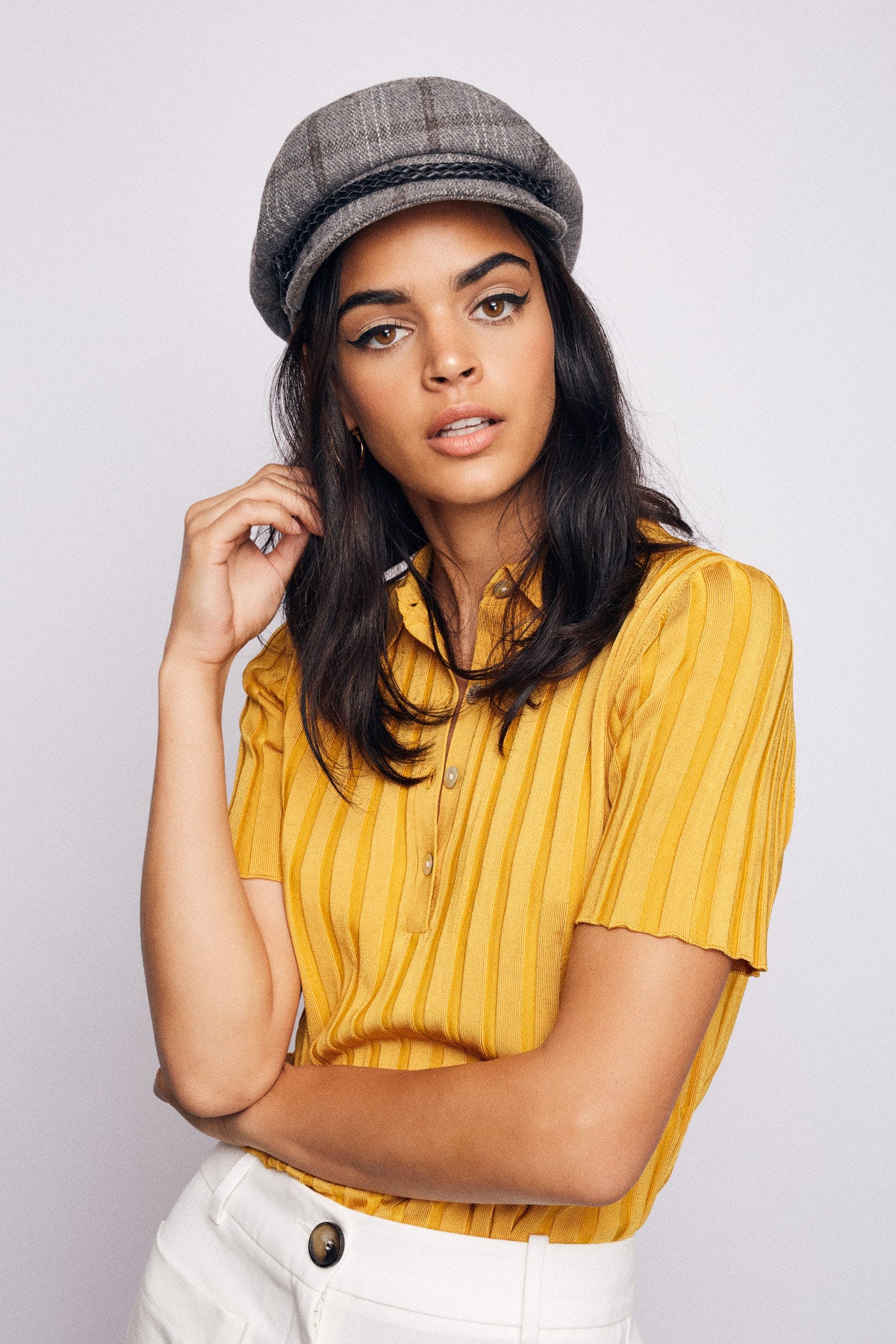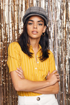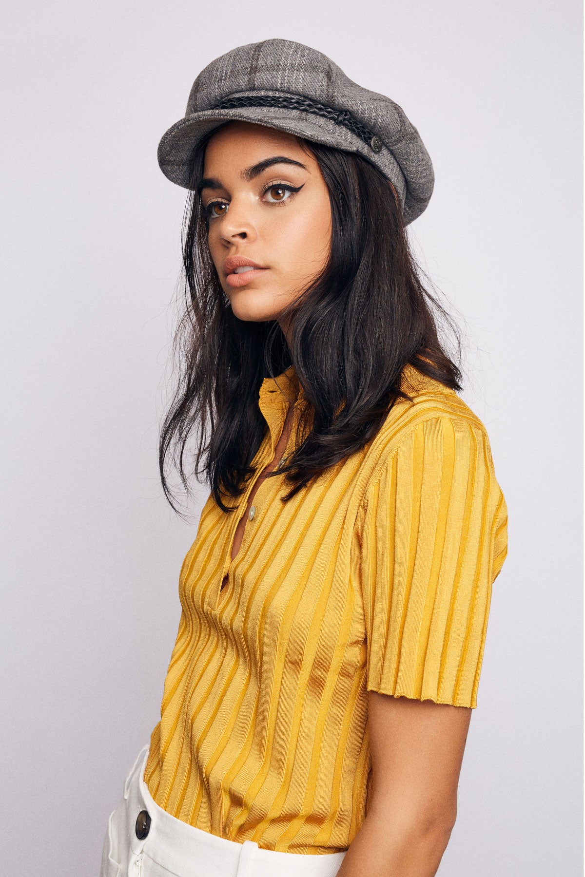 A women's cut-and-sew fisherman cap with custom lining.