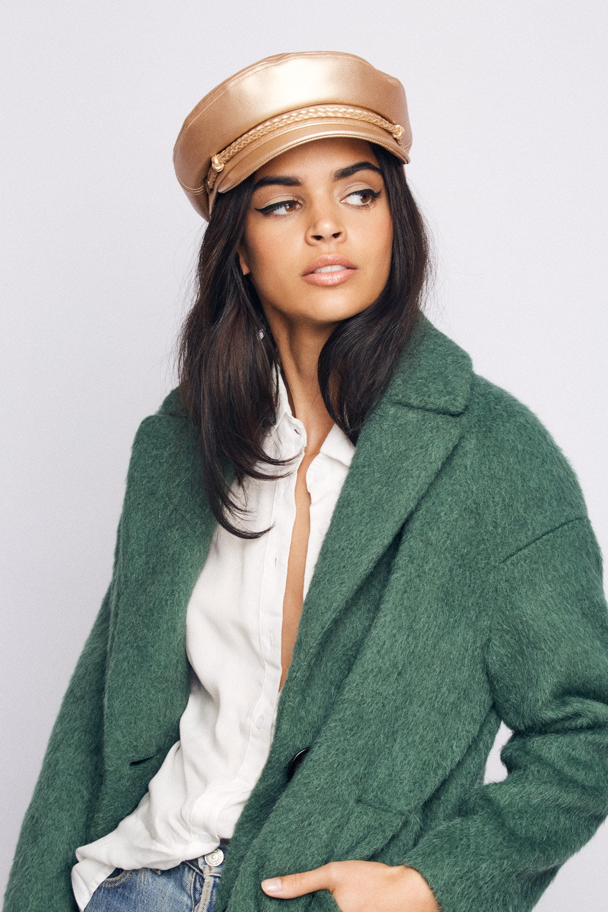 A women's cut-and-sew fisherman cap with custom lining.