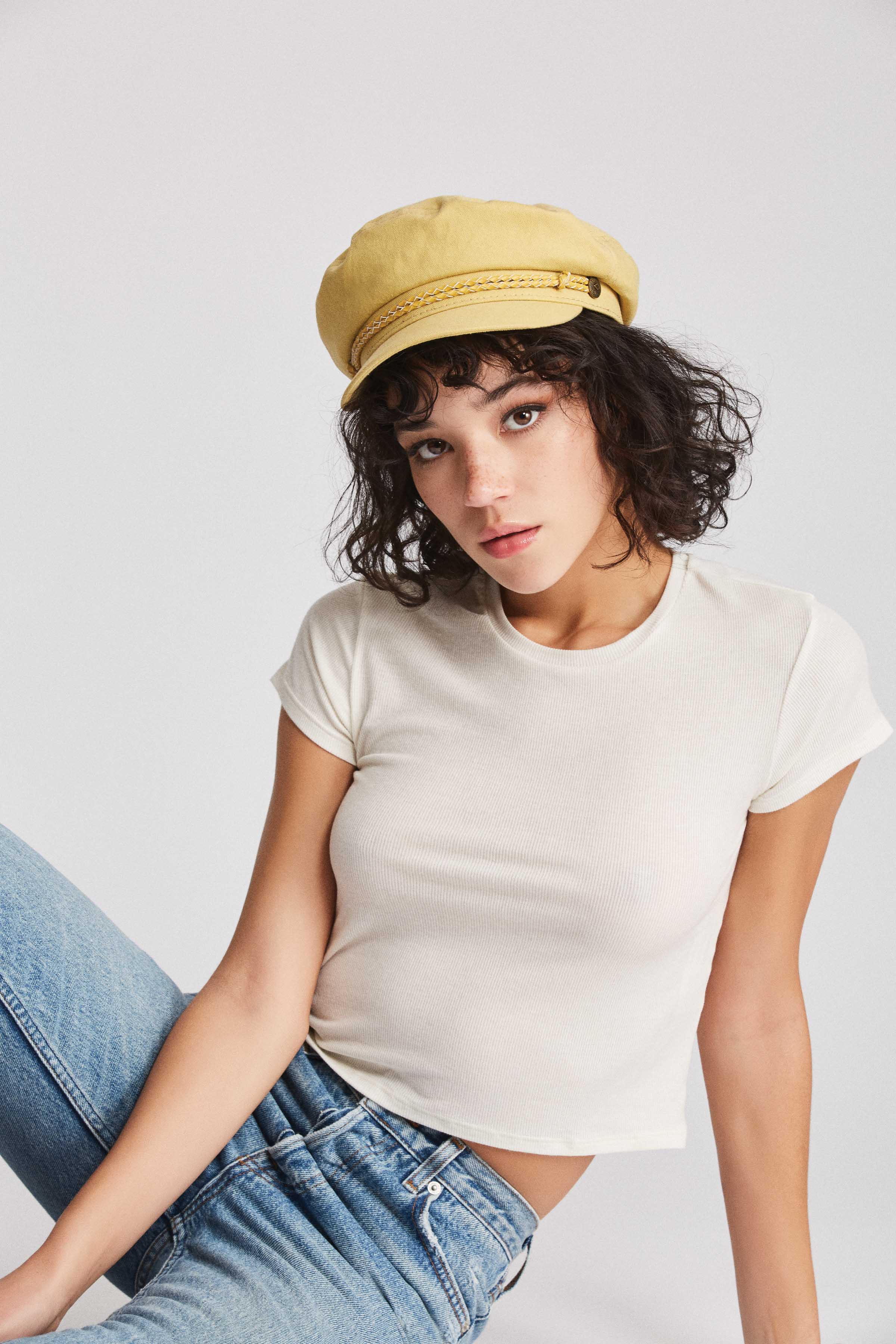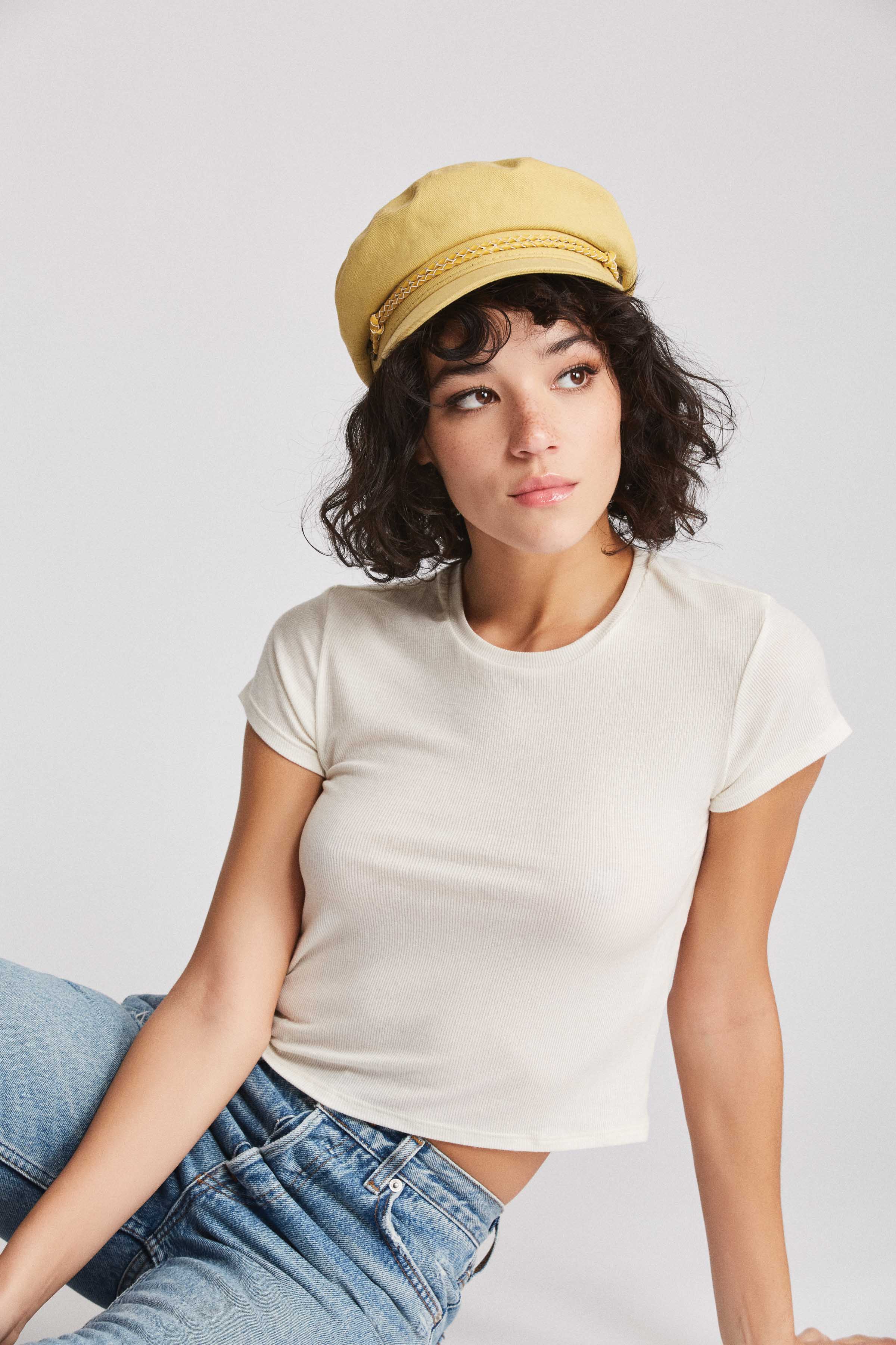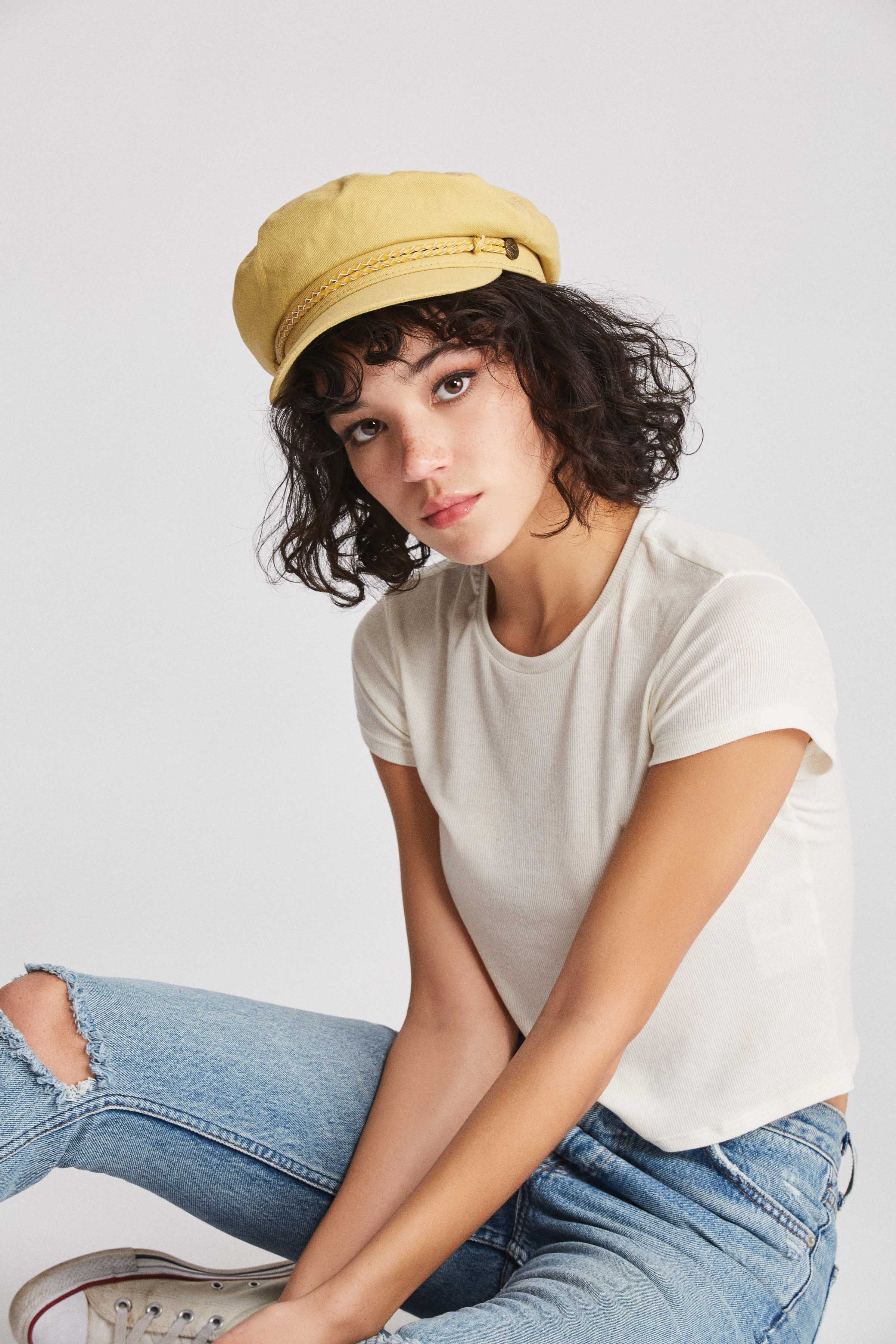 A women's cut-and-sew fisherman cap with custom lining.
