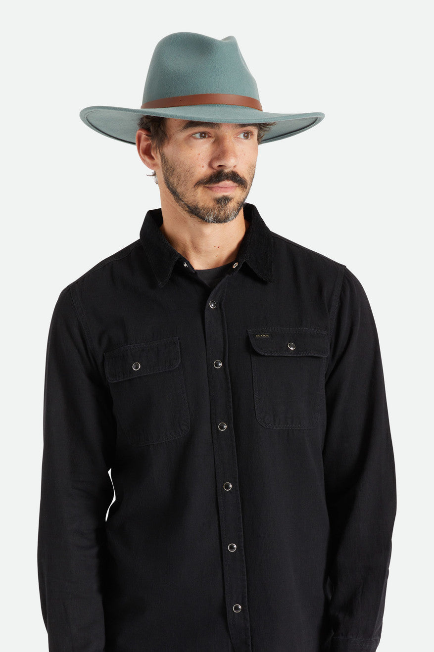 The Field Proper is a refined flat-brim hat with a strong center crease. Designed with responsibly sourced wool felt and accented with a genuine leather strap with tails. Customize your fit with the adjustable Velcro strap under the inner sweatband and wear this one everywhere.