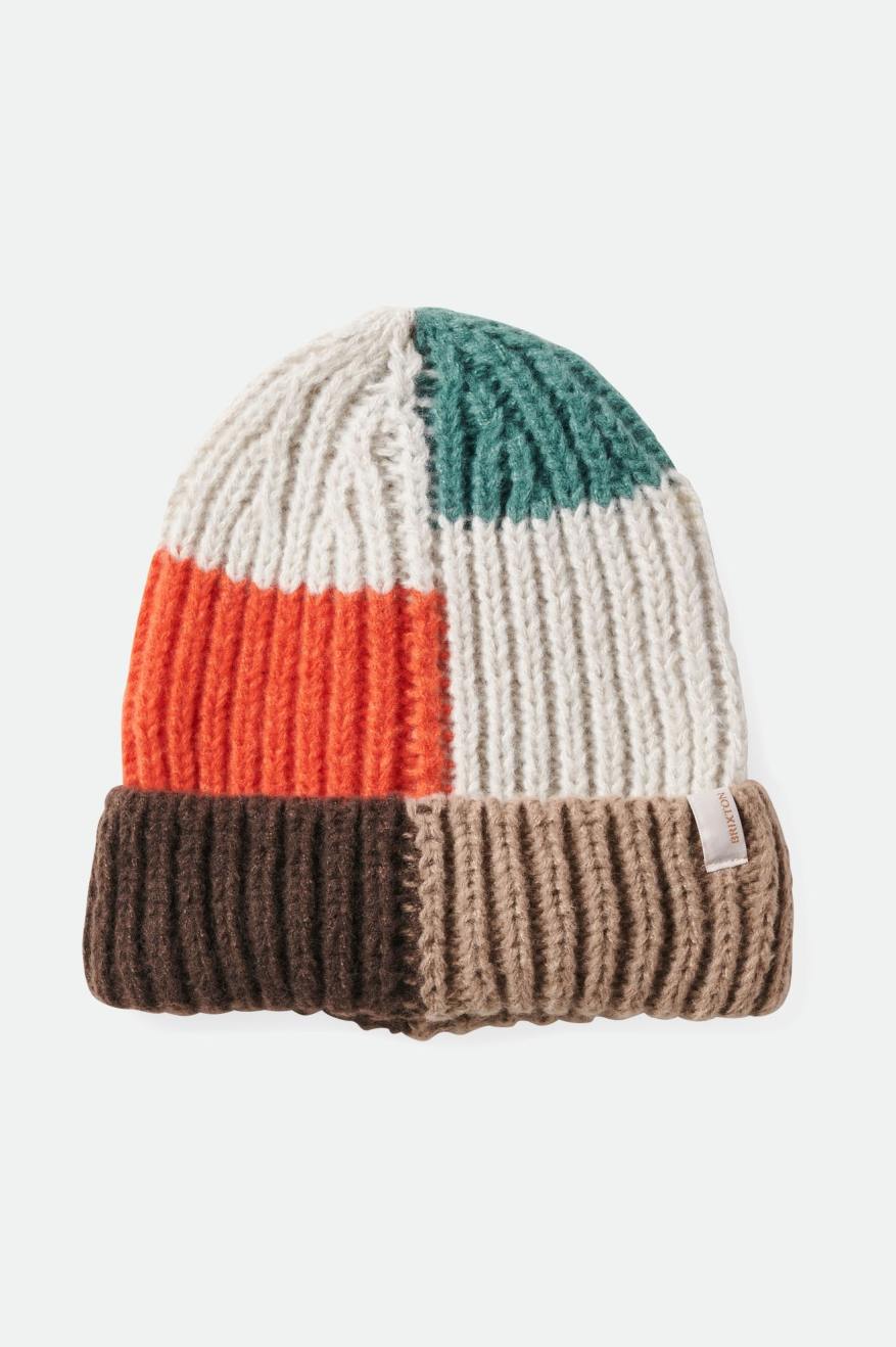 The Fiona Beanie pairs a cozy 1X1 chunky knit with a bold color block design. Finished with a folded cuff and woven label accent.