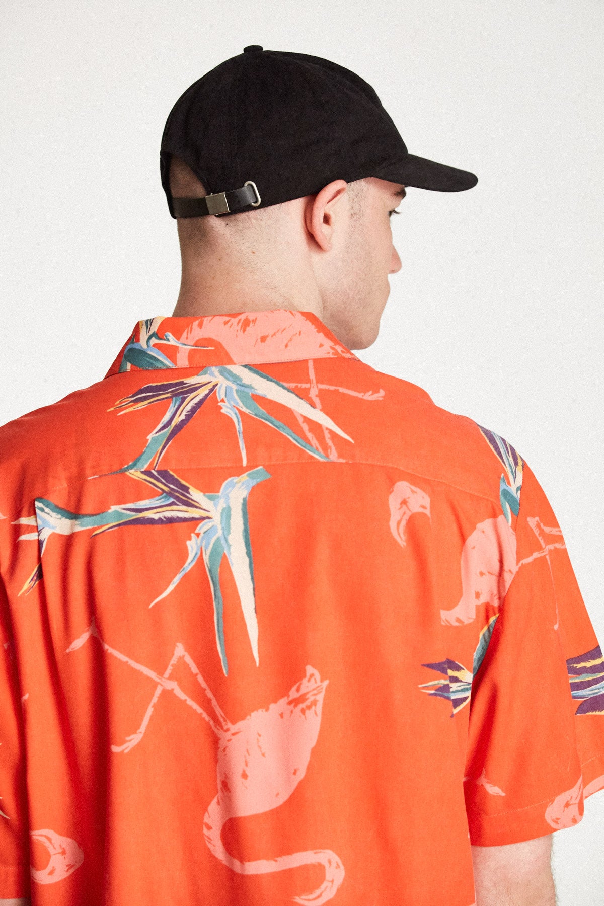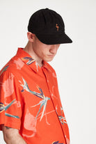 A six-panel brushed cotton twill cut-and-sew cap featuring a direct embroidery and a leather strap.