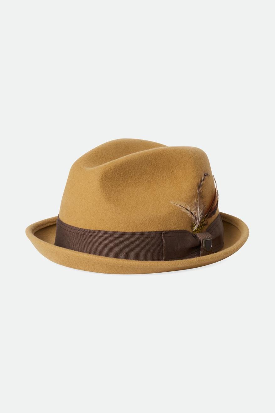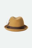 The Gain Fedora offers up vintage style with its short brim in an upward curve. It’s decorated with a grosgrain band, metal crest pin and authentic feather detail. Customize your fit with the adjustable Velcro strap under the inner sweatband.