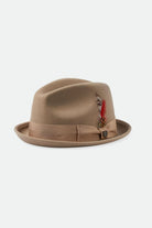 The Gain Fedora offers up vintage style with its short brim in an upward curve. It’s decorated with a grosgrain band, metal crest pin and authentic feather detail. Customize your fit with the adjustable Velcro strap under the inner sweatband.