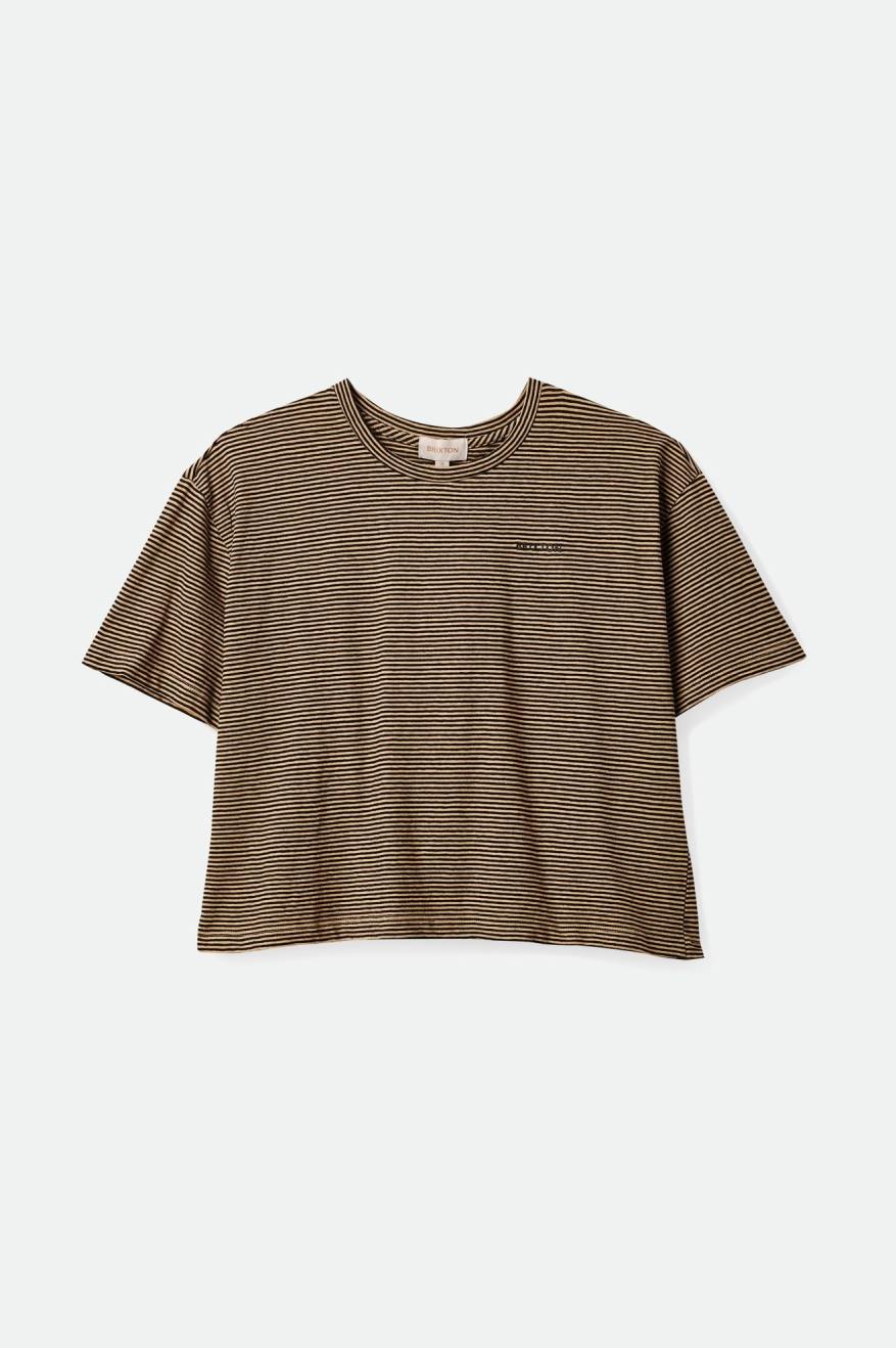 The Grenada Skimmer is a relaxed-fit tee in a cotton linen blend. Featuring custom stripes and a left chest embroidery.