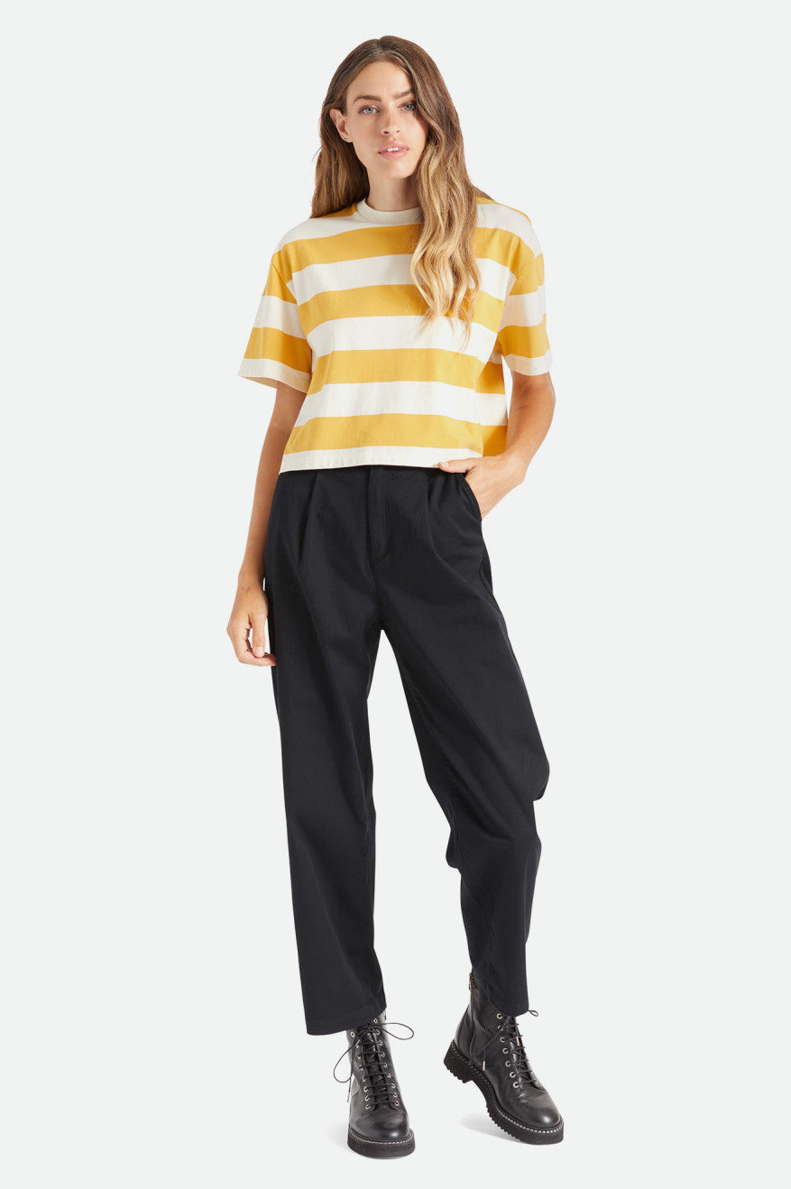 The Hilt Alpha Line S/S Skimmer Tee has a roomy fit designed to land just below the waist. It has drop shoulders, longer sleeves and our signature Hilt stripes.