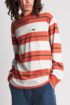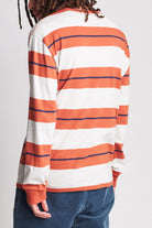 A 150-gram 100% cotton tailored-fit knit top featuring yarn dyed stripes, a patch pocket, and a woven pocket label.