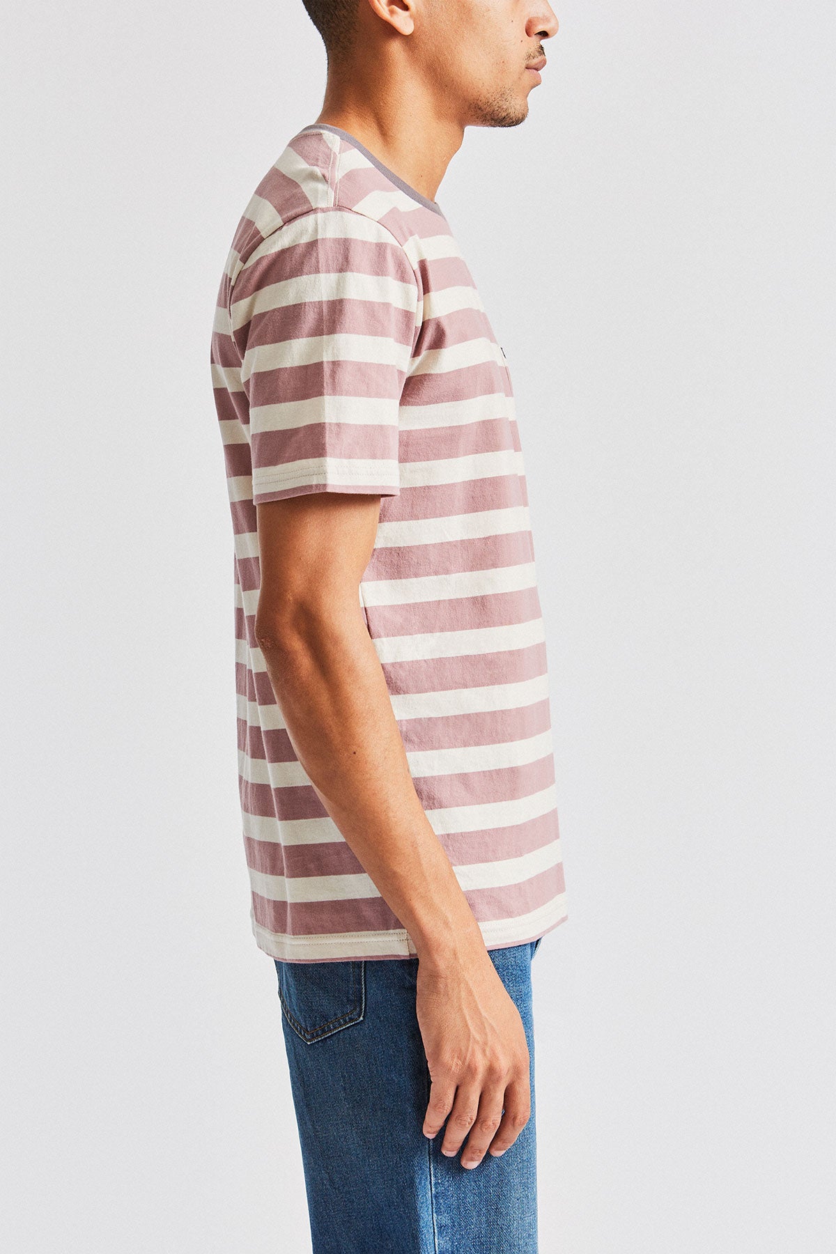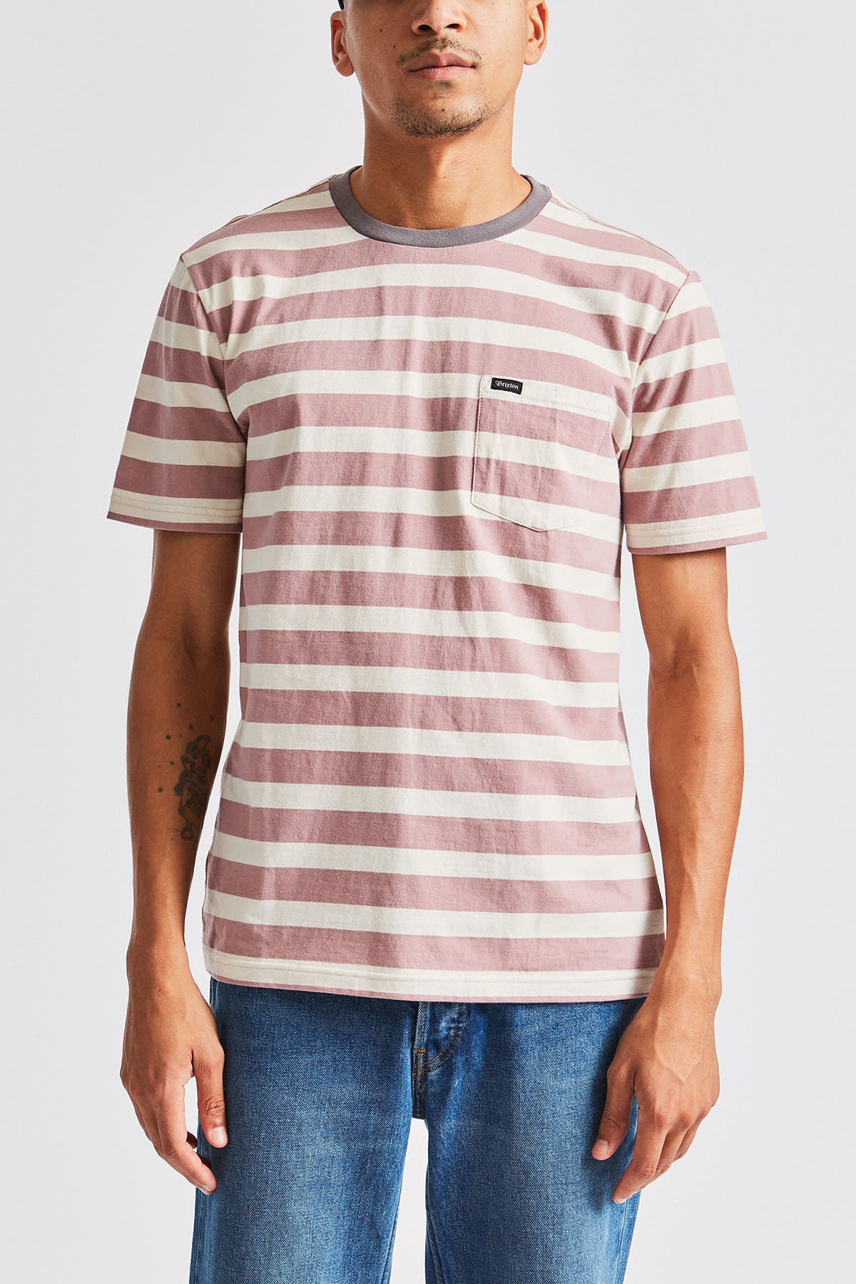The Brixton Hilt S/S Pocket Knit is a 150-gram short-sleeve pocket-knit top featuring yarn-dyed stripes and our woven Brixton pocket label.