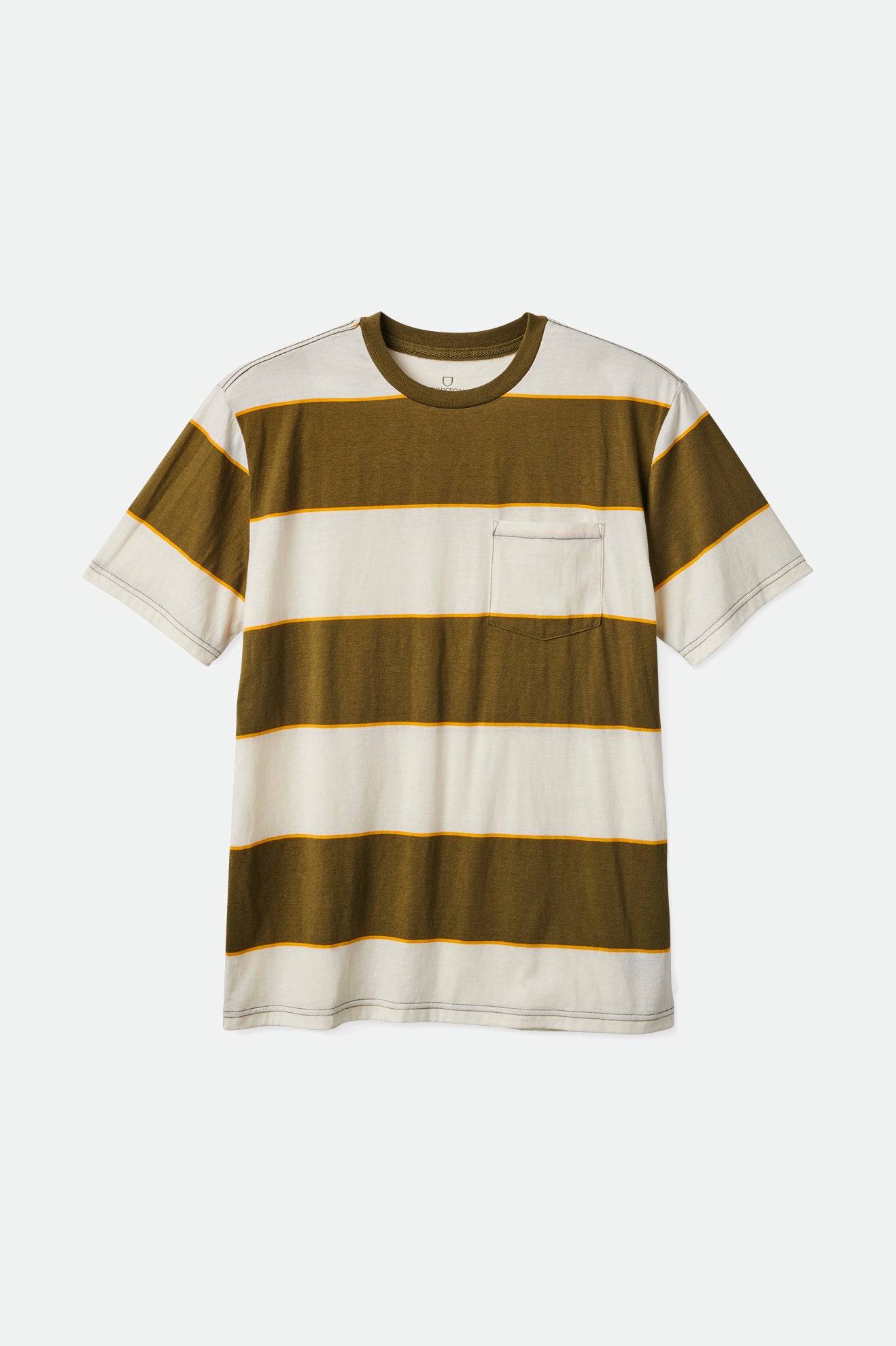 Simultaneously modern and vintage, this crewneck tee features horizontal stripes and a left chest pocket. Crafted with a soft cotton poly blend.