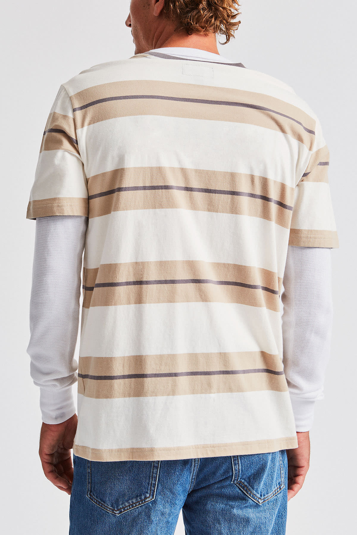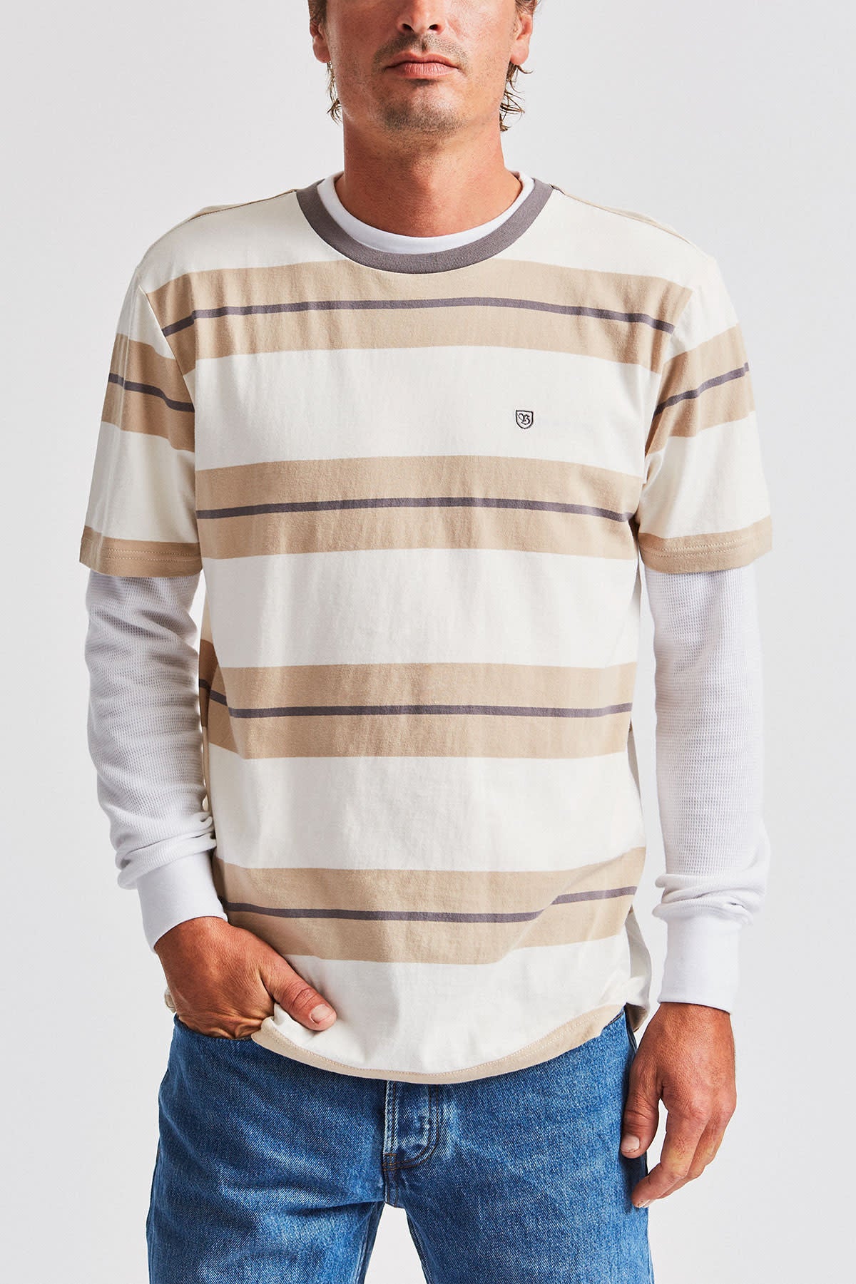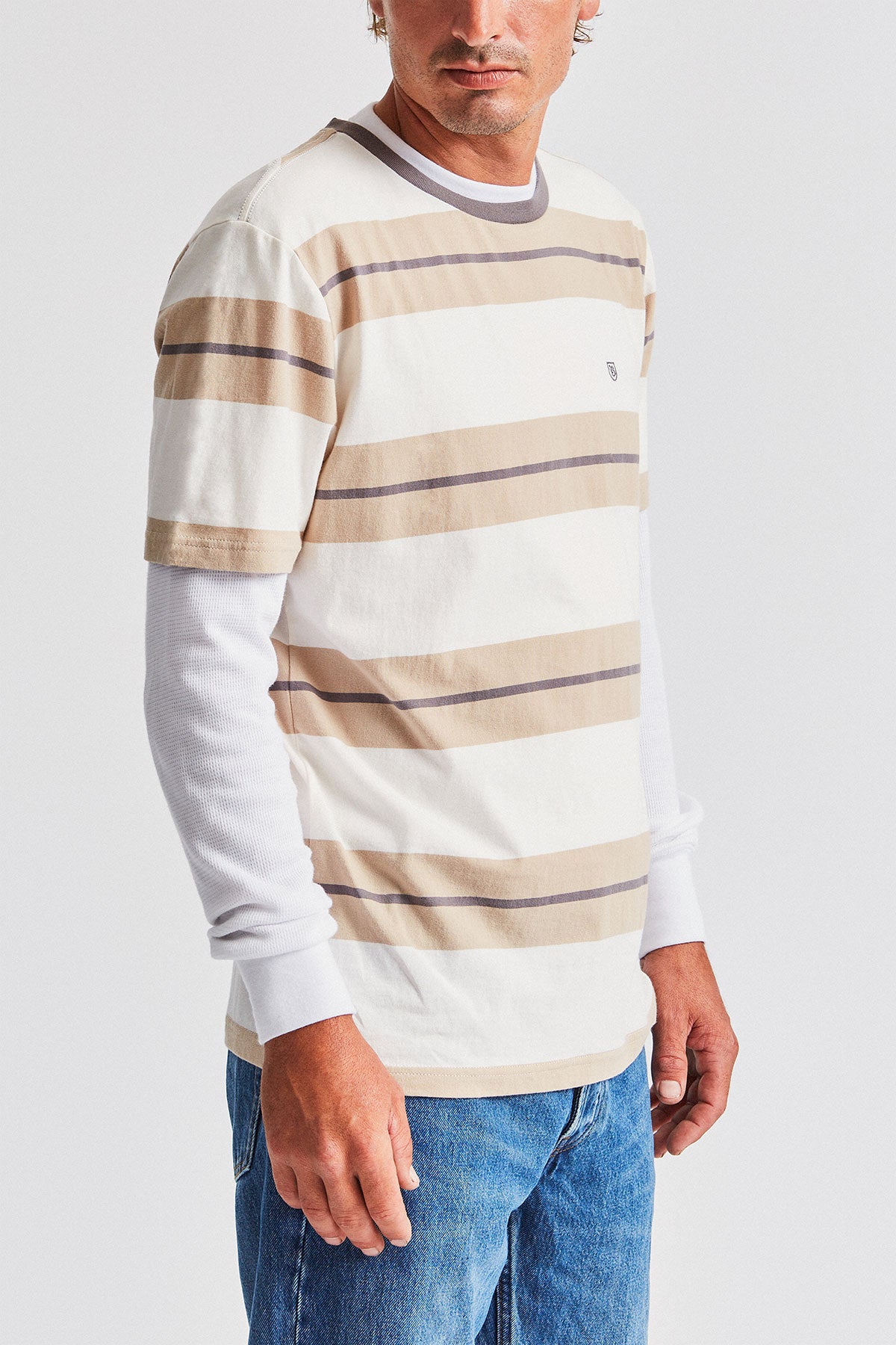 The Brixton Hilt Standard Fit S/S Knit is a 150-gram short-sleeved jersey-knit top featuring yarn-dyed stripes and our Brixton B-Shield embroidery at left chest.