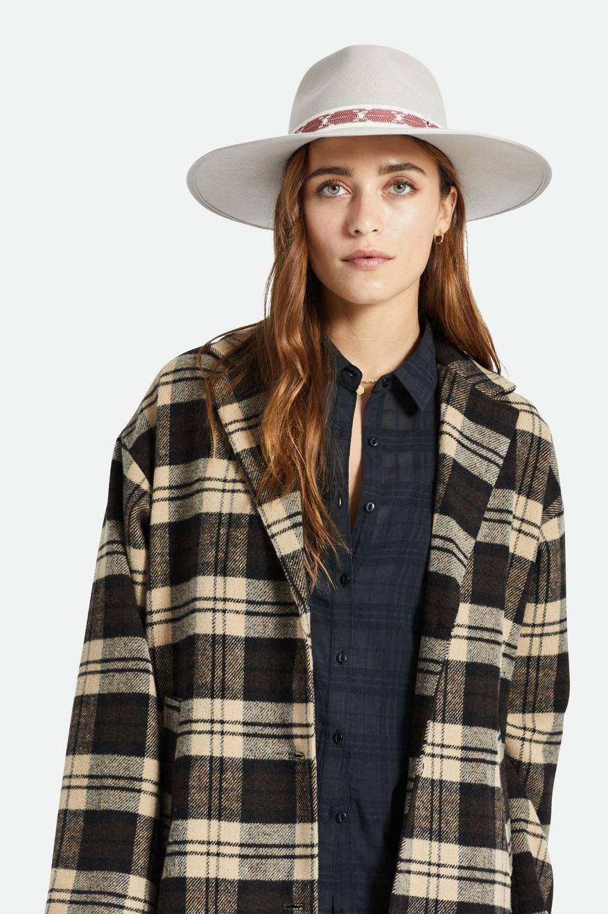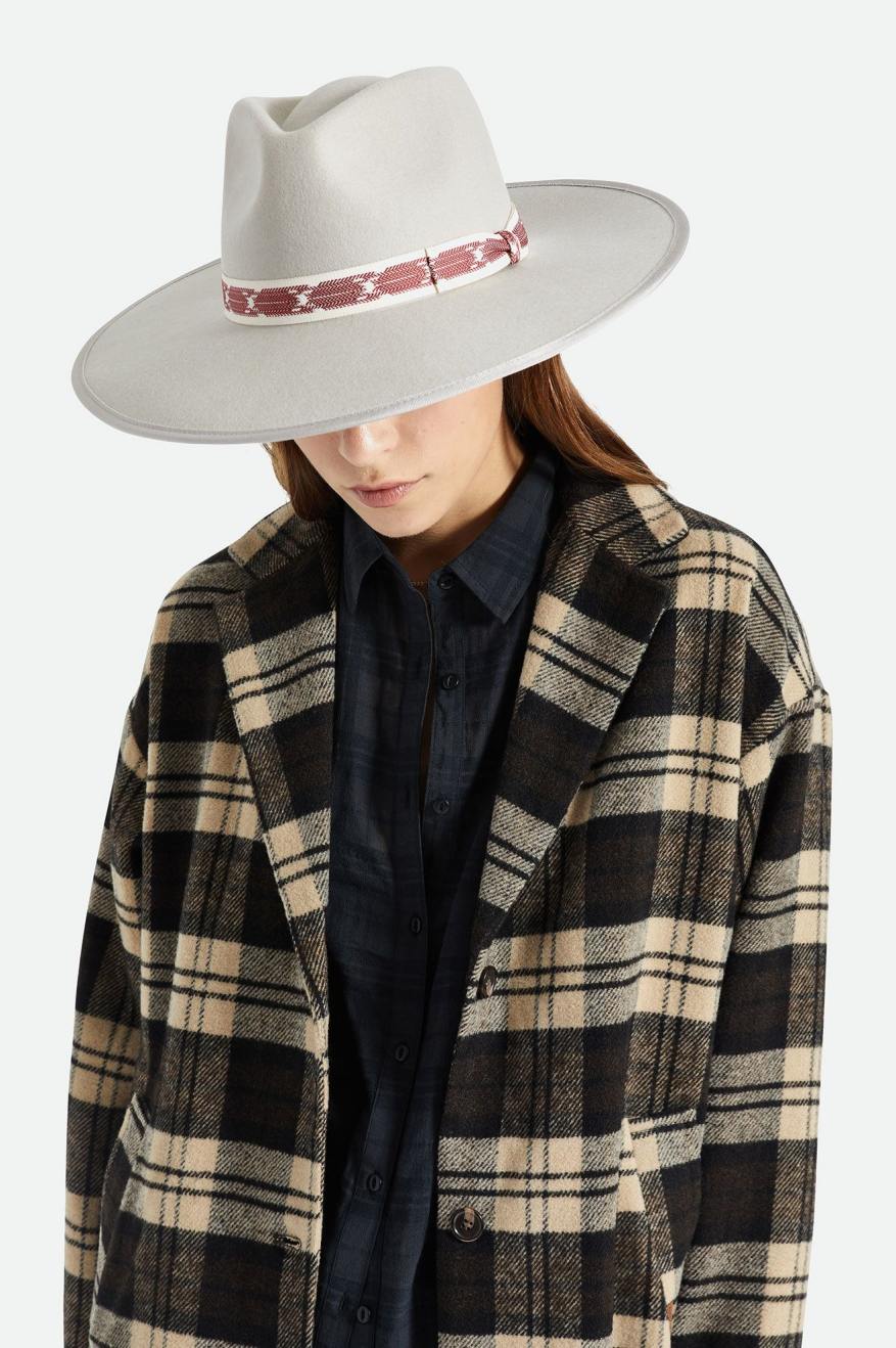 The Jo Rancher is a well-balanced hat with a wide brim, delicate pinch and teardrop crease. Made with structured and sustainable wool felt, it's a refined choice for outdoor events and elevating everyday. Finished with a fine grosgrain band and metal headwear plaque.