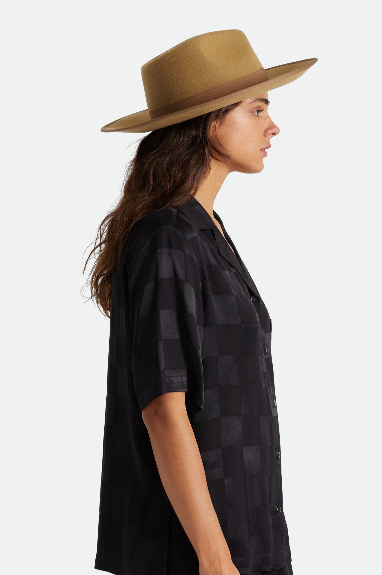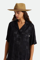 The Jo Rancher hat features a wide brim that offers you protection from the sun. Made from felt it has a metal headwear plaque and a grosgrain outside band and brim taping to add a little western attitude to your style.