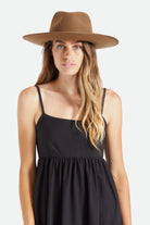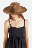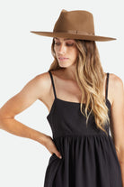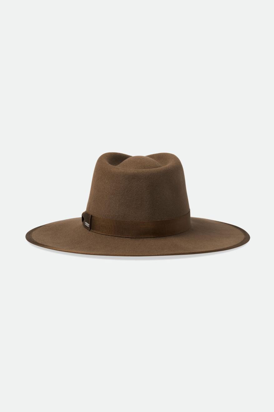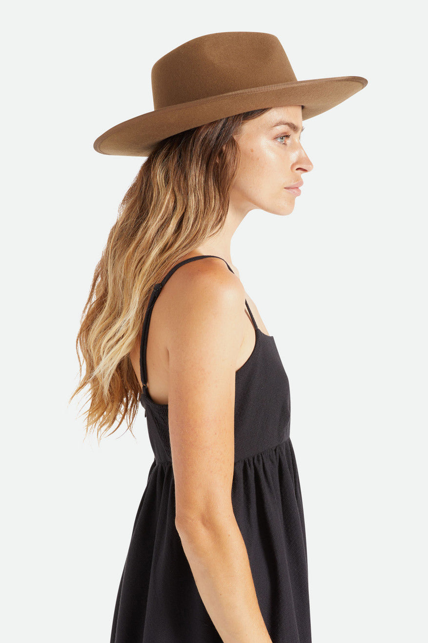 The Jo Rancher is a well-balanced hat with a wide brim, delicate pinch and teardrop crease. Made with structured and sustainable wool felt, it's a refined choice for outdoor events and elevating everyday. Finished with a fine grosgrain band and metal headwear plaque.