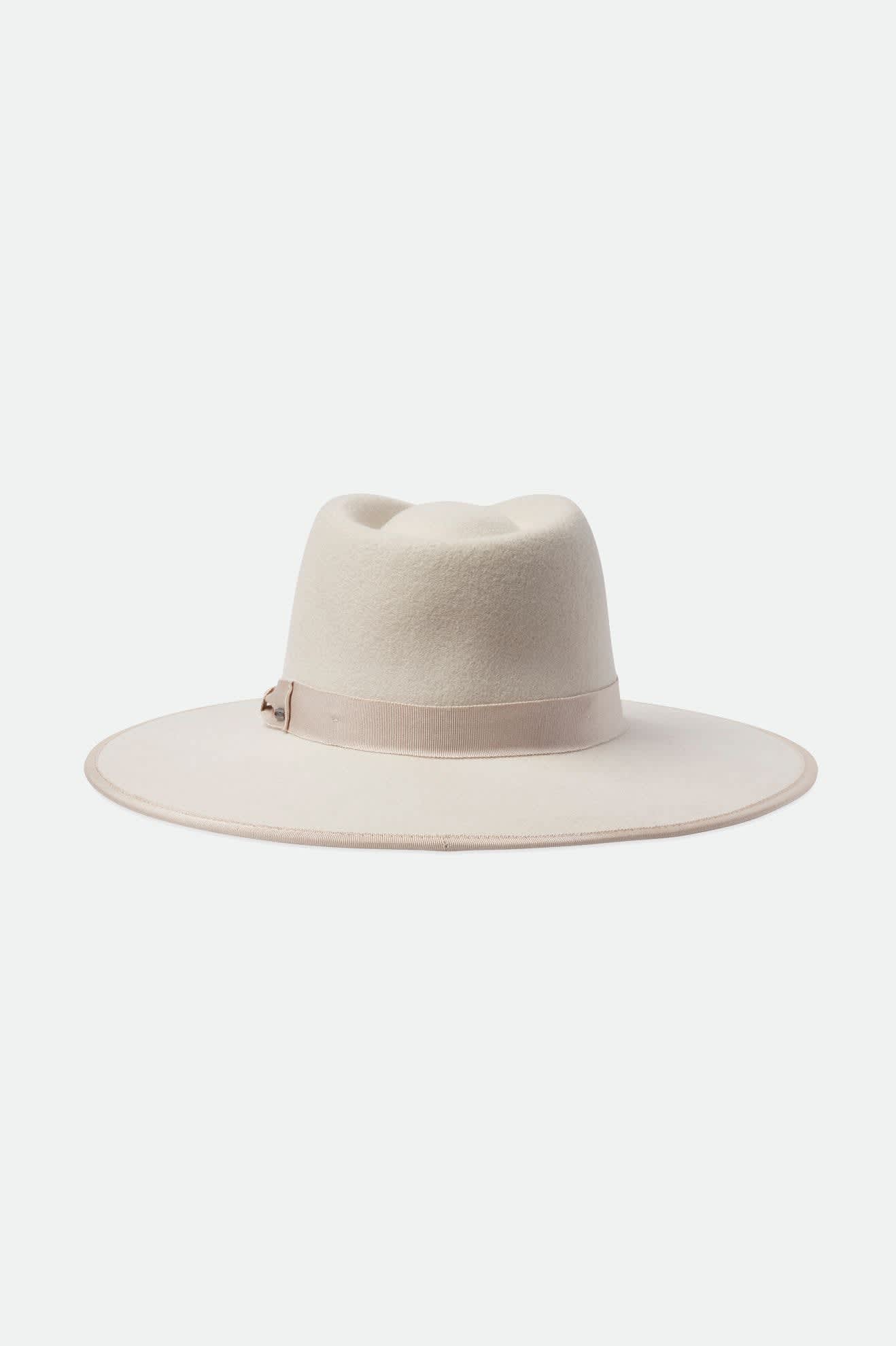 The Jo Rancher is a well-balanced hat with a wide brim, delicate pinch and teardrop crease. Made with structured, Australian wool felt, it's a refined choice for outdoor events and elevating everyday. Finished with a fine grosgrain band and metal headwear plaque.