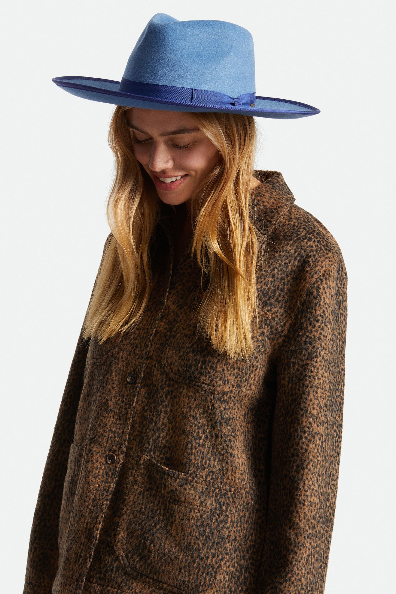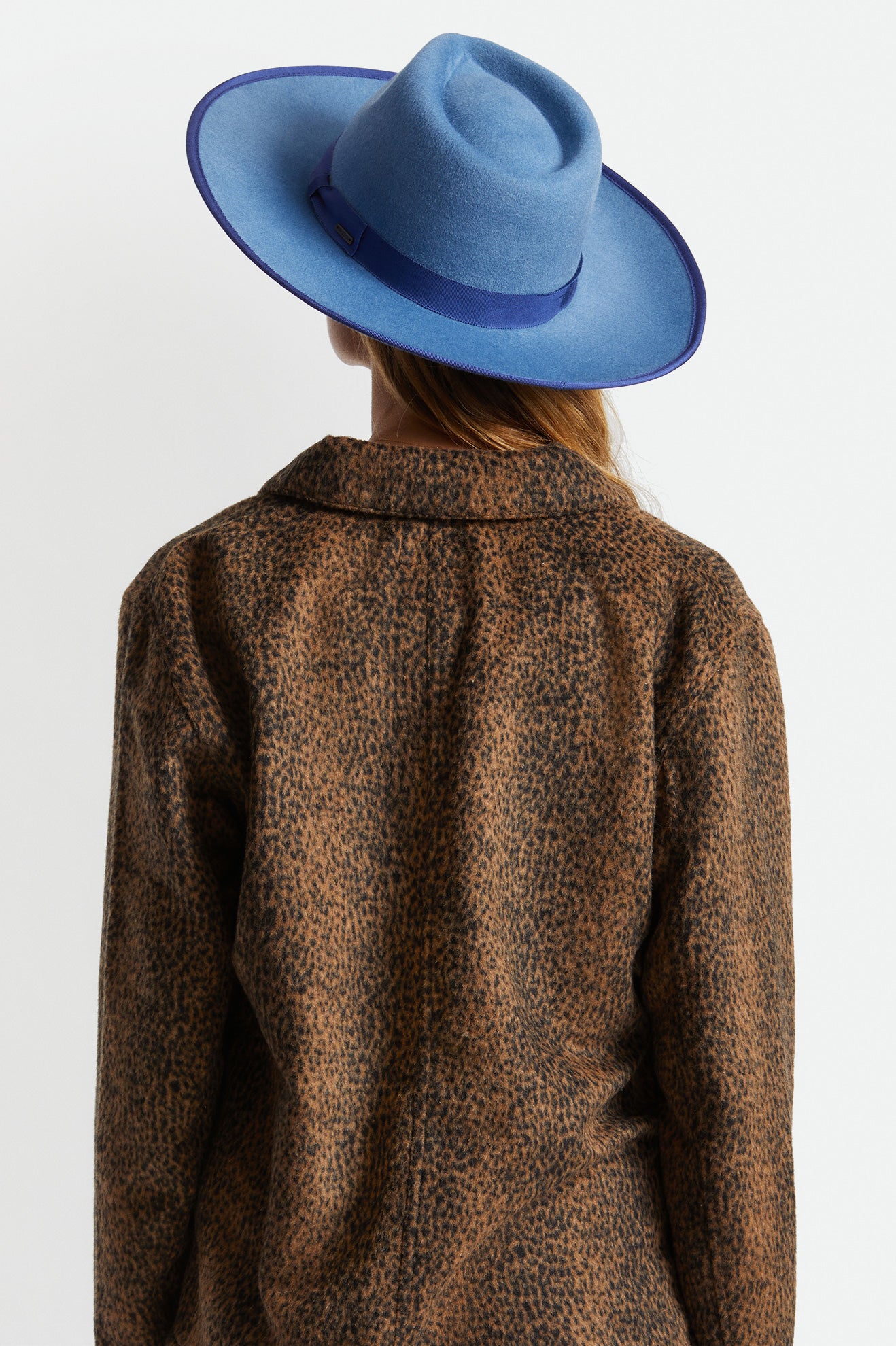The Jo Rancher hat features a wide brim that offers you protection from the sun. Made from felt it has a metal headwear plaque and a grosgrain outside band and brim taping to add a little western attitude to your style.