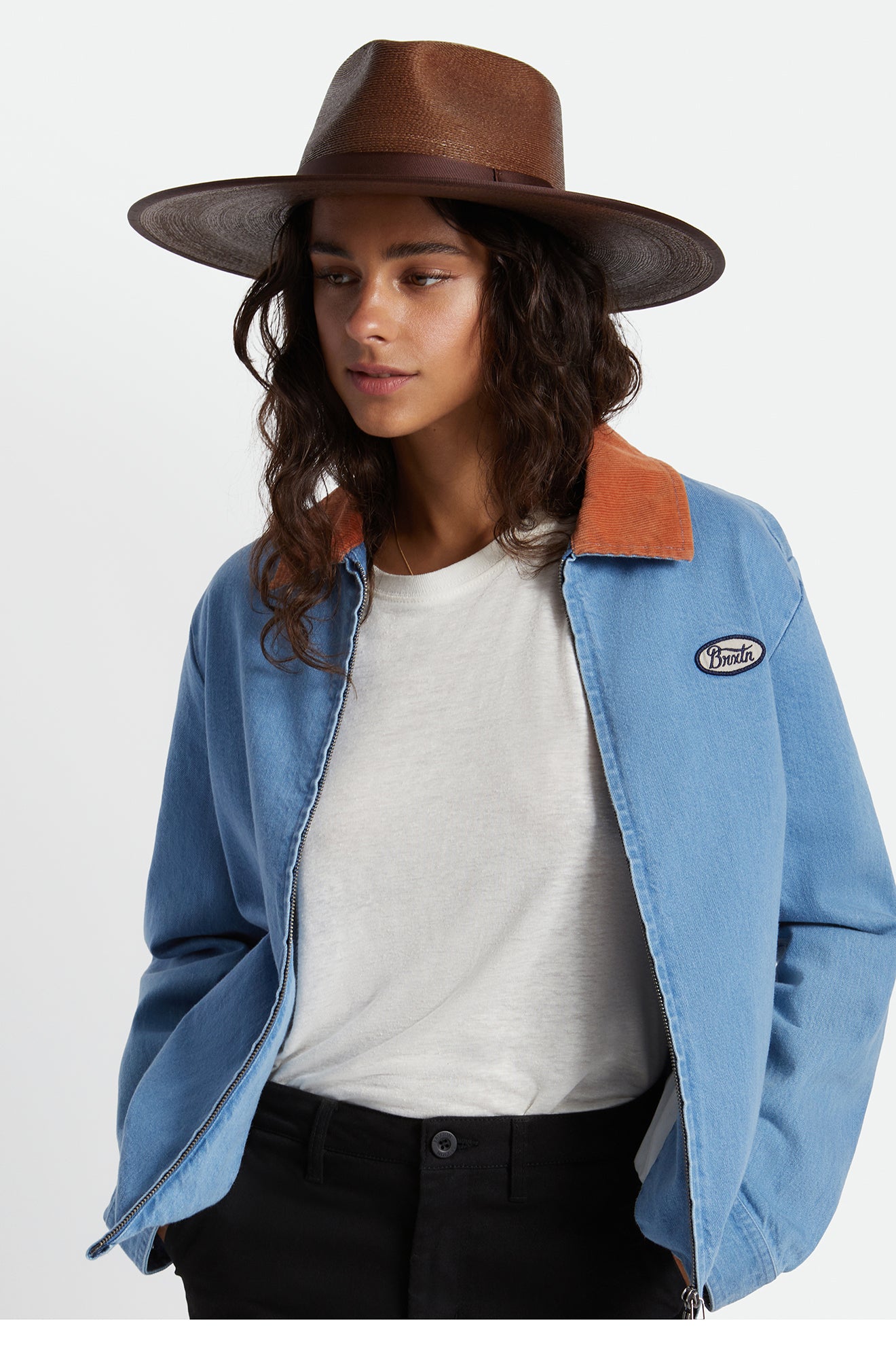 The Jo Straw Rancher Hat is a wide brim, sophisticated straw hat designed with fine Tripilla straw for a high-quality look and feel. Finished with a grosgrain band, brim taping, and metal headwear plaque, this one is great for taking on adventures or dressing up any everyday look. And thanks to the hidden size adjuster under the sweatband, there's no stress on choosing sizing. If you're not sure which size to choose, we recommend sizing up to enable the size adjuster to create a customized fit.
