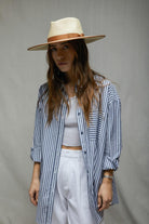 The heroine of her story, the Jo Straw Rancher is a premium flat-brim hat with refined details. It’s made with high quality Tripilla straw, offering 50+ UPF protection for sunny receptions and canyon concerts. Finished with a grosgrain band, smooth brim taping and an adjustable interior band for a flawless fit.