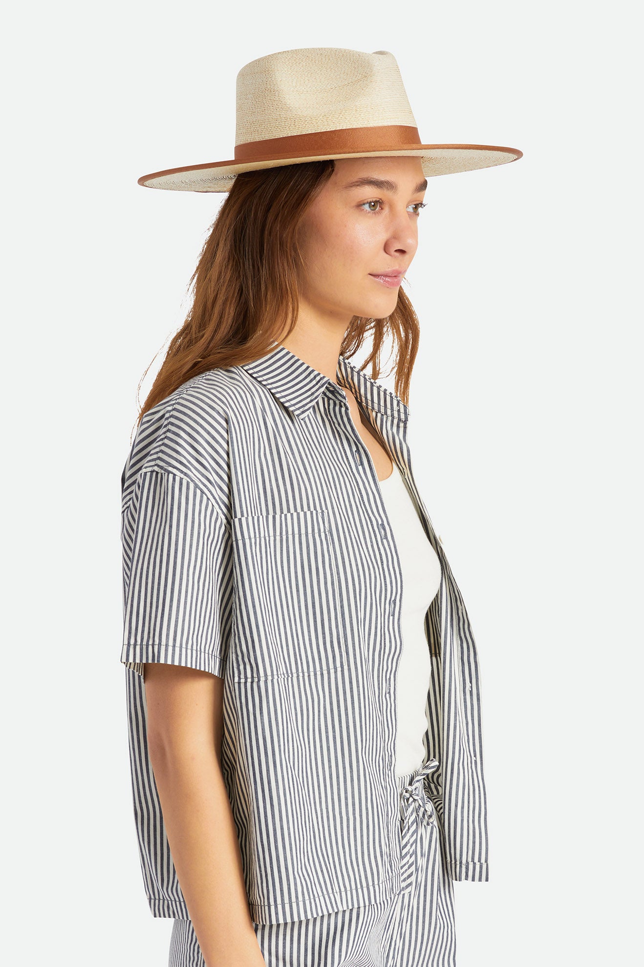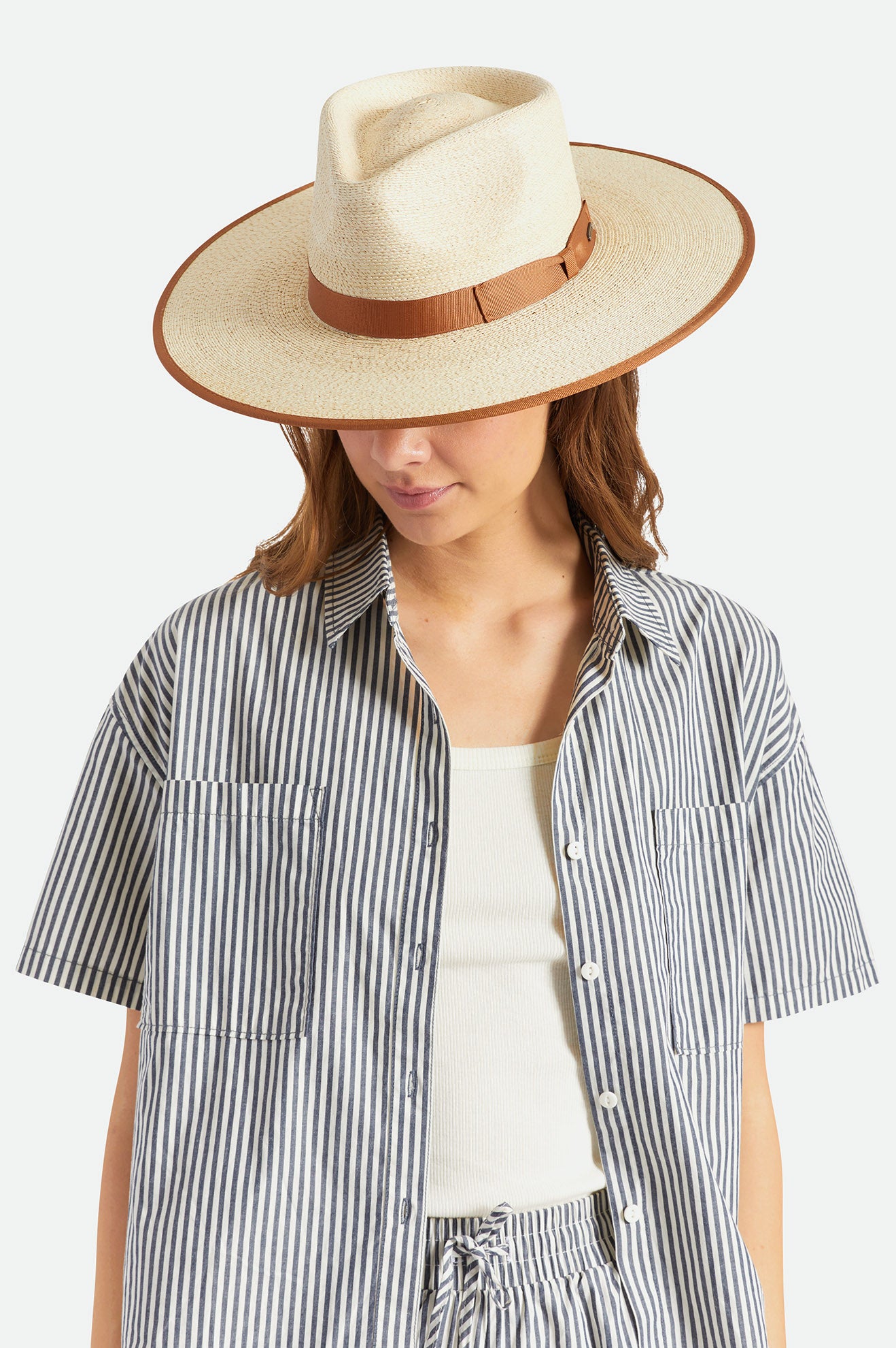 The Jo Straw Rancher is a wide brim straw hat finished with a grosgrain band and brim taping. Fine Tripilla straw adds structure and vintage appeal. Featuring an adjustable fit and 50+ UPF protection, this one is ready for sunny adventures and everyday elegance.