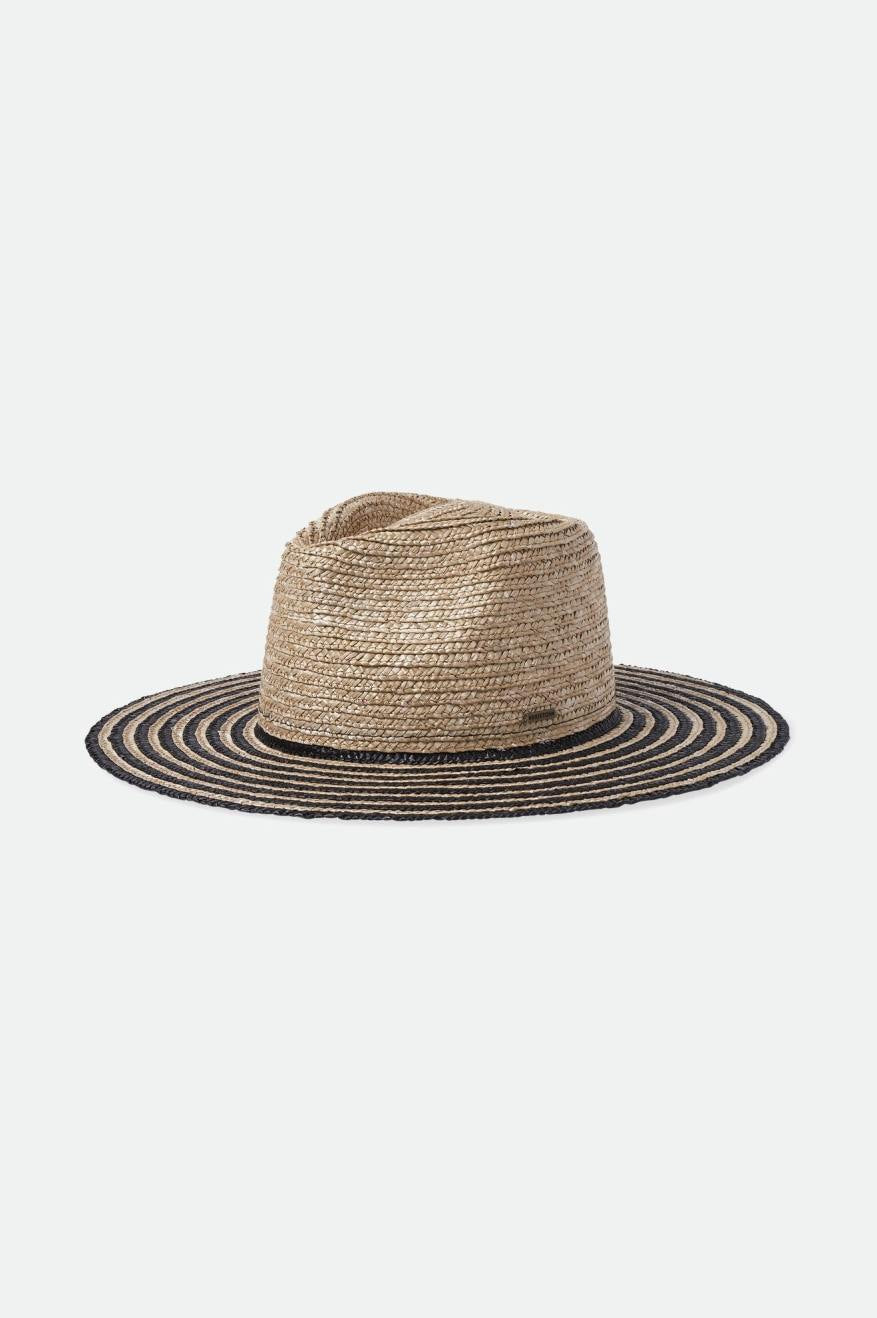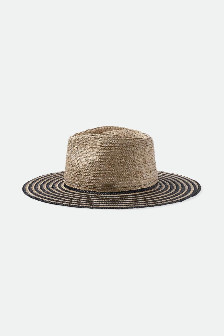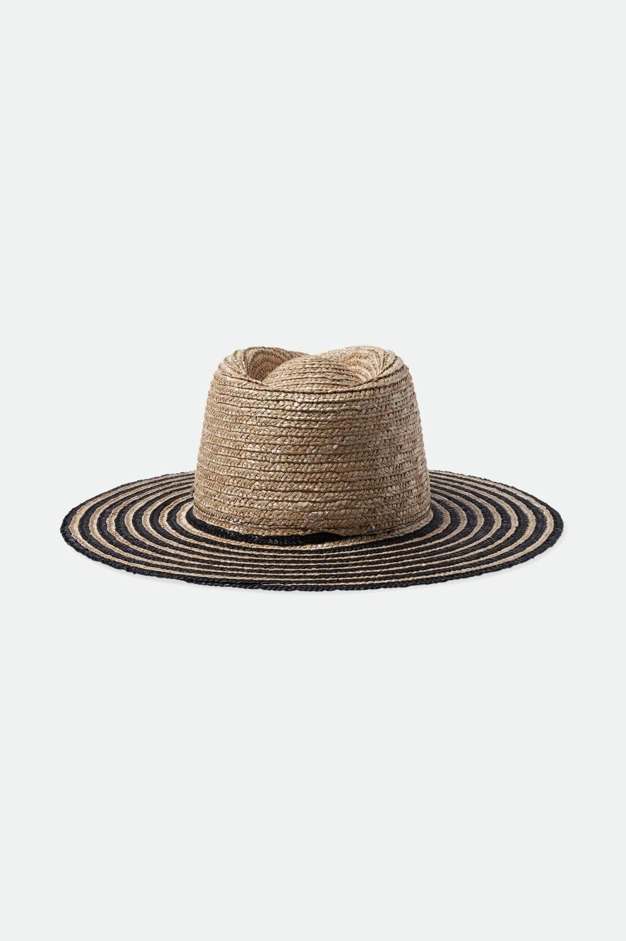 The Joanna is a wheat straw hat woven with light stiffness. This version features a free crown you can customize per event. A wide brim adds extra sun protection on all sides, making this a must for blue sky soirées.