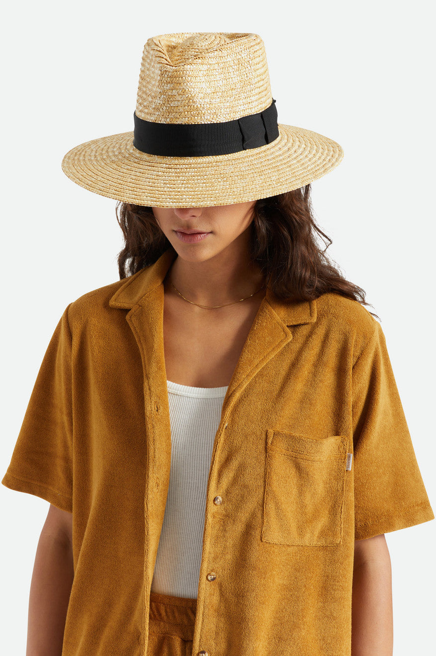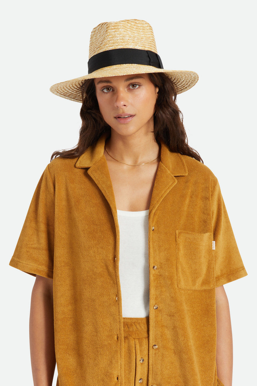 A perfect sunny-weather staple, the Joanna Short Brim hat has a grosgrain band, a metal headwear plaque and an adjustable inner strap. It's made with wheat straw, which provides natural 50+ UPF protection. Whether you're going for a stroll or off on an adventure, this hat is ready to move.