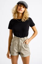 A basic, slim fit tee that can be dressed up or down. The Karlie Tee's cotton and linen jersey blend is breathable and gives it a nice, drapey hang. Everyone needs the perfect basic tee that goes with anything, and this one is it.