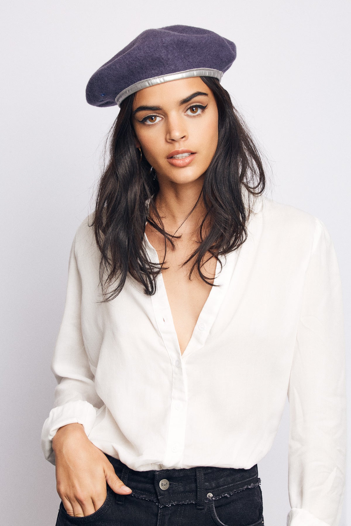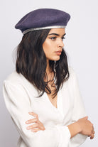 A custom felt beret with faux-leather band taping.