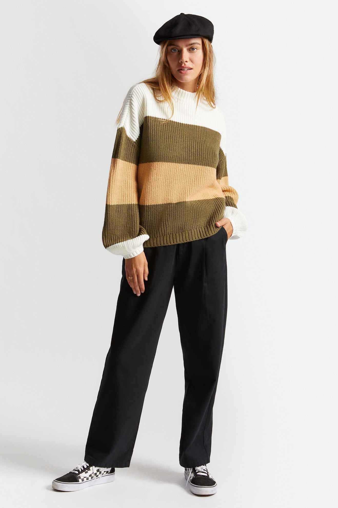 Designed with acrylic yarn-dyed stripe rib, this sweater is classic, while the block stripes add a fun pop of color.