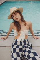 Taking notes from traditional fedoras, the Marcos has a polished silhouette with a wide, flat brim and a strong front pinch. Premium palm straw provides a light structure and 50+ UPF. Customize your fit with an adjustable Velcro strap underneath the inner sweatband.