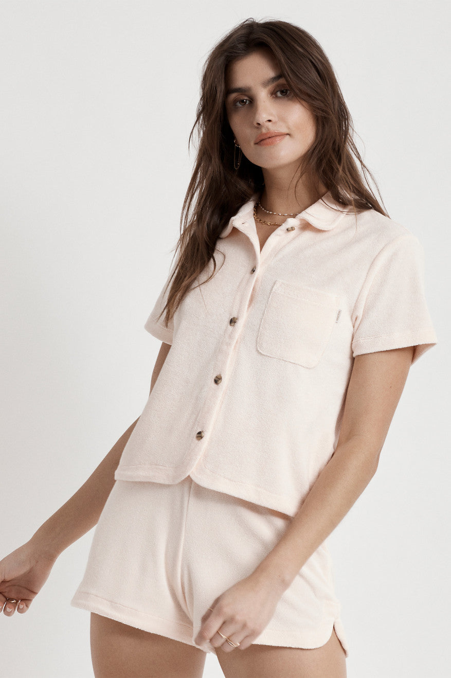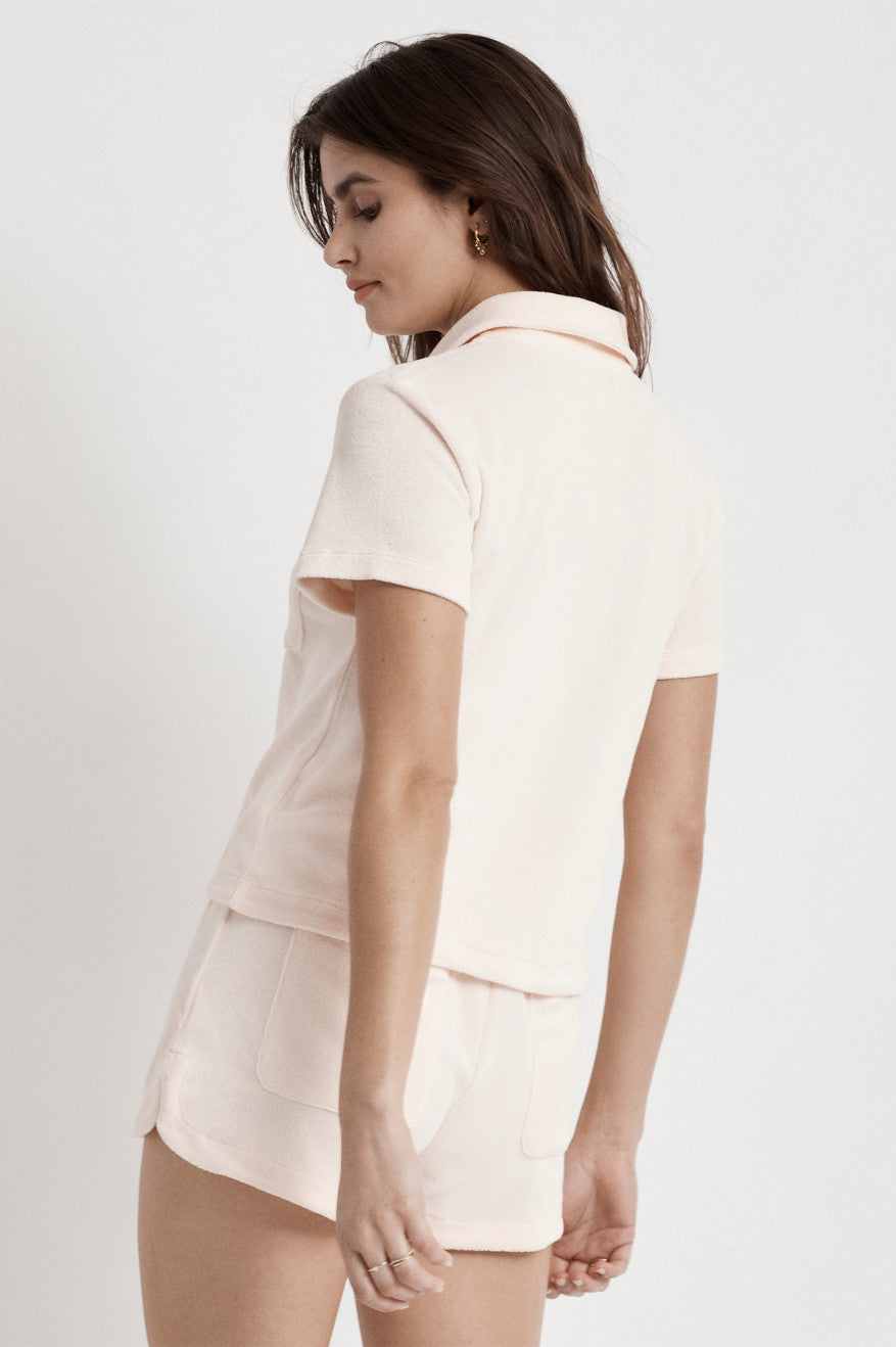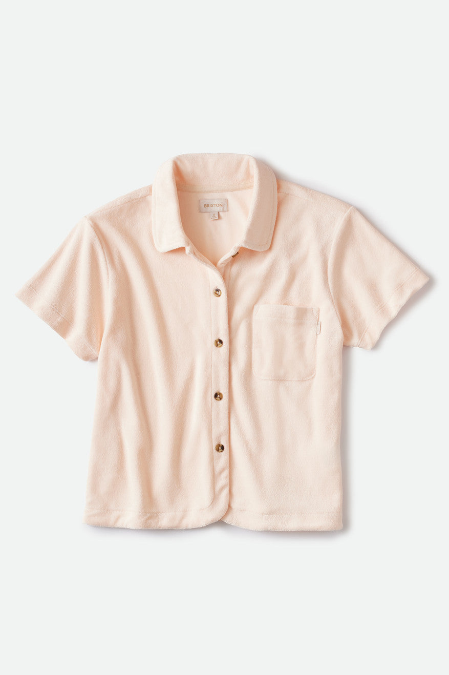Your new summer staple. The Marquee SS Terry top is a standard fit with a rounded collar and a patch pocket on the left chest. The logo buttons and the logo flag label at the side seam, finish it off in style. A great piece for layering or wearing on its own.