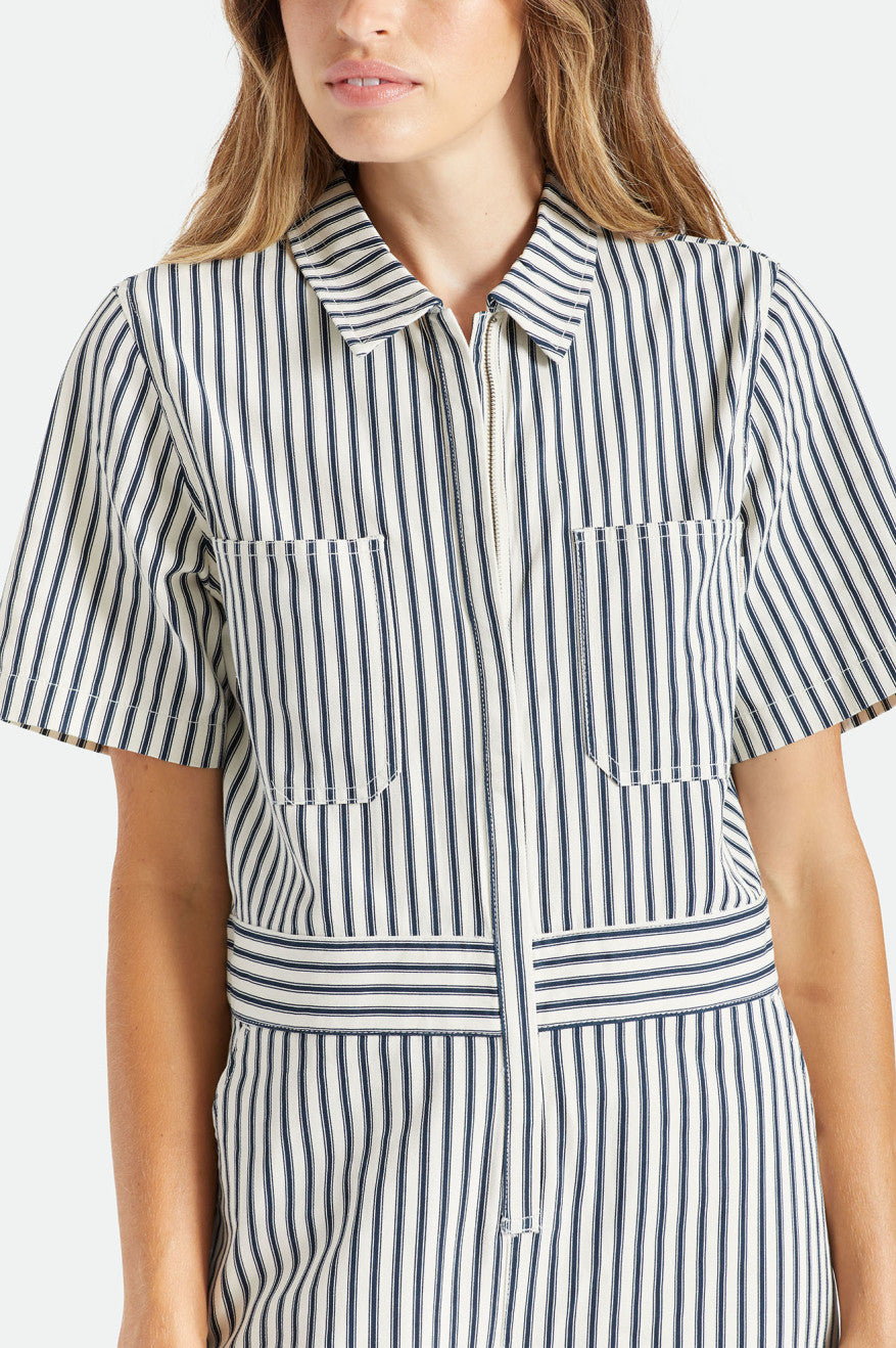 The Mersey S/S Coverall brings a touch of femininity to workwear. Crafted with durable, breathable cotton, it has a relaxed fit that wears with ease, all day long. Utility pockets offer extra storage and a hidden deep zipper feels custom. Flush horizontal striping adds definition without restriction movement.