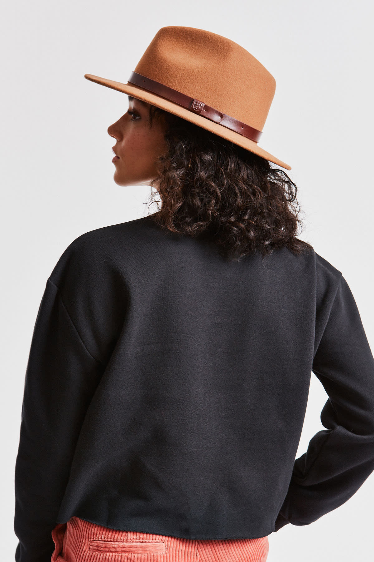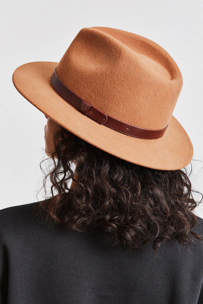 The Brixton Messer Fedora is a medium flat-brim felt fedora with a faux-leather band.