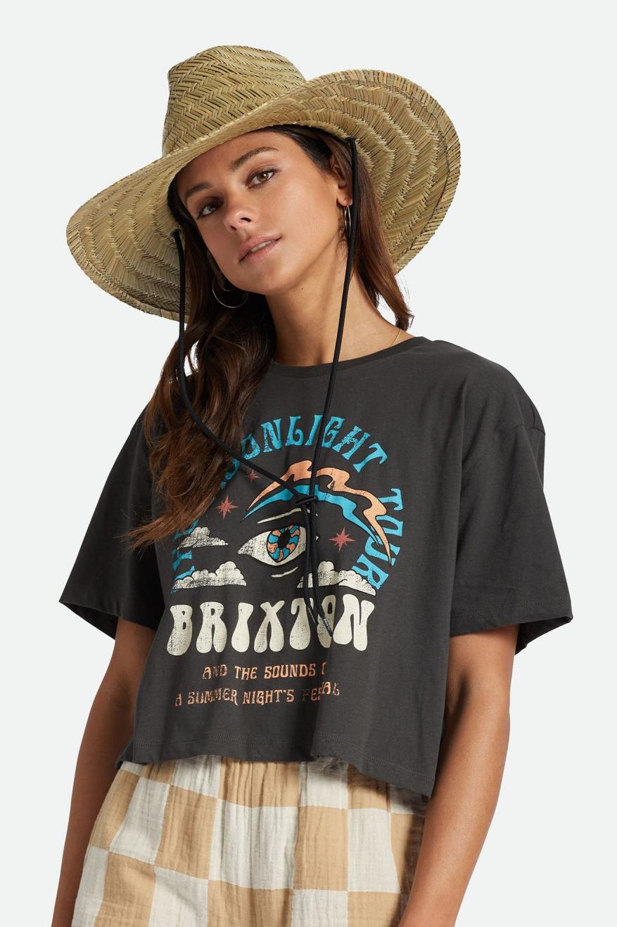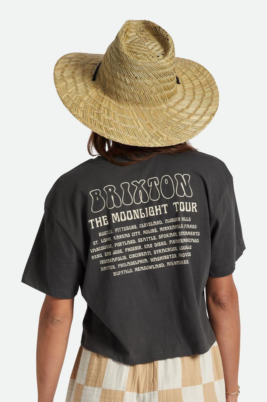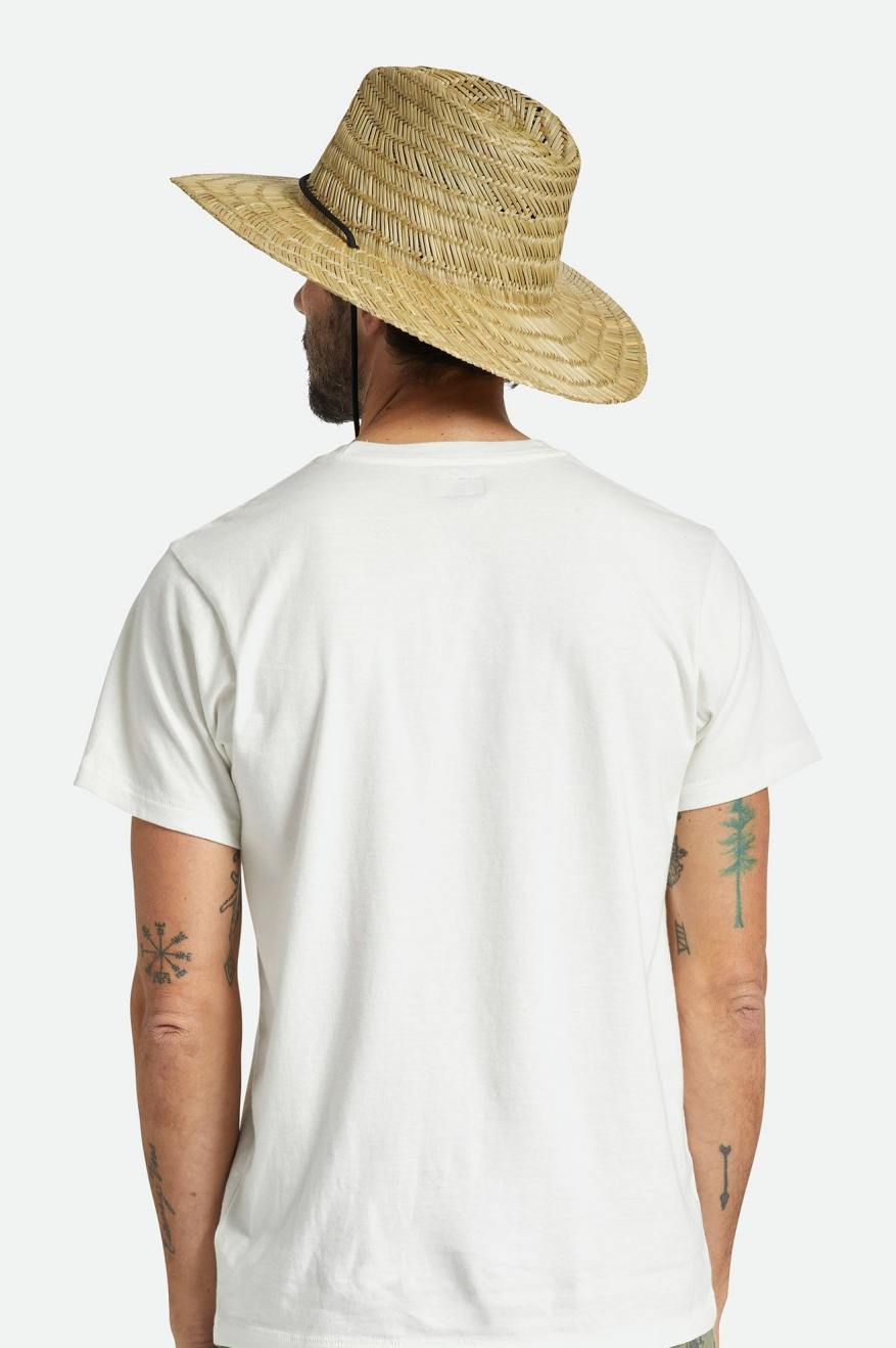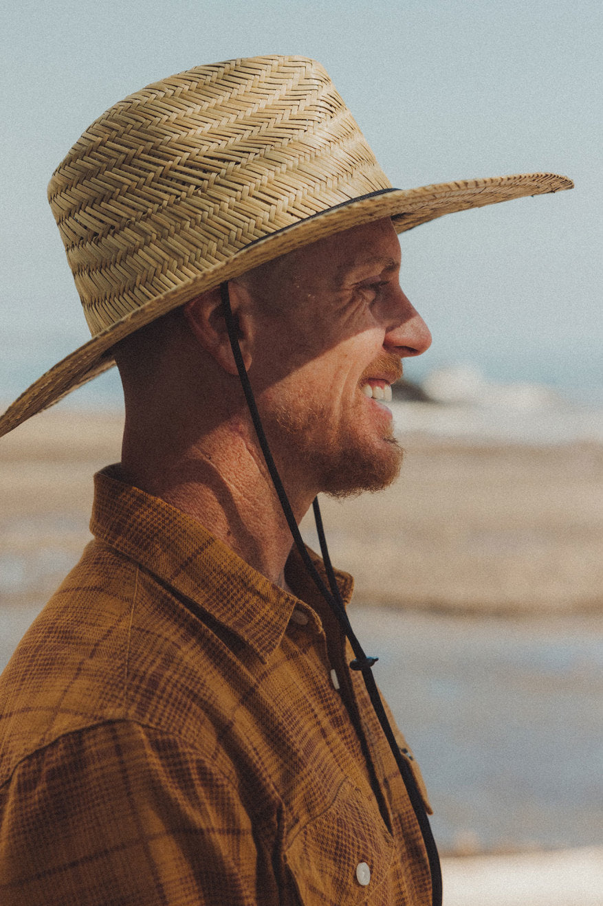 Our timeless Messer gets restyled for the sun. Made with woven straw, this travel-ready topper is breathable, lightweight, and naturally sun protective. Detailed with inspired under-brim prints and an adjustable drawcord to secure it on your head or back.