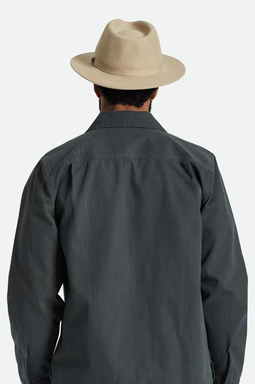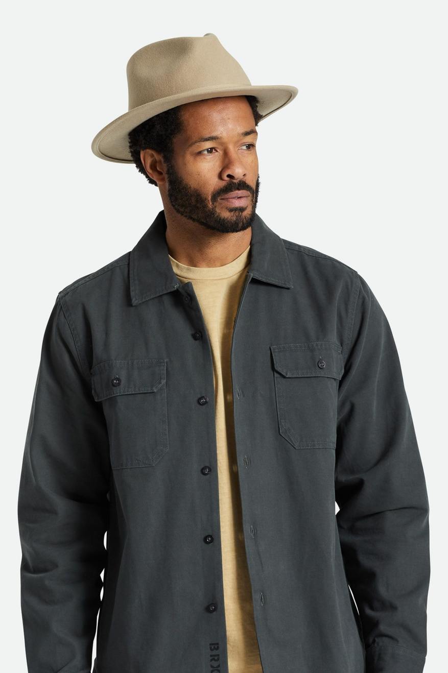 The Messer Packable fedora is a medium-brim classic, designed with a soft pinch and a teardrop crease. This hat is made with responsive and sustainable wool felt that springs back to shape after being packed away for travel. Adjust your fit with the Velcro strap hidden under the inner sweatband.