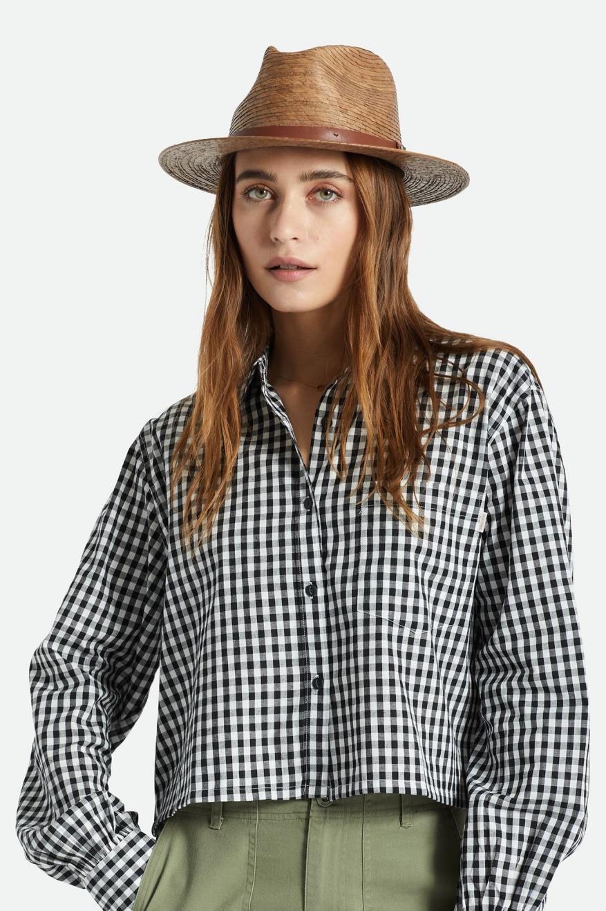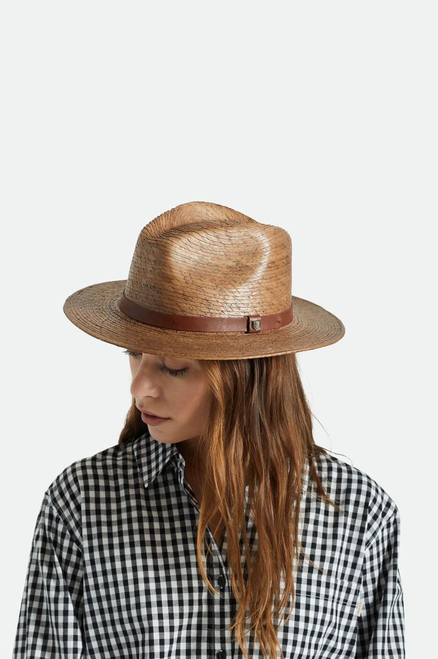 With a flat brim and statement crease, the Messer is an iconic shape in the Brixton line-up. This version is crafted with fine Tripilla straw that offers structure and 50+ UPF protection. Finished with a genuine leather band and metal crest pin, the Messer is the first thing you'll reach for when you leave the house.