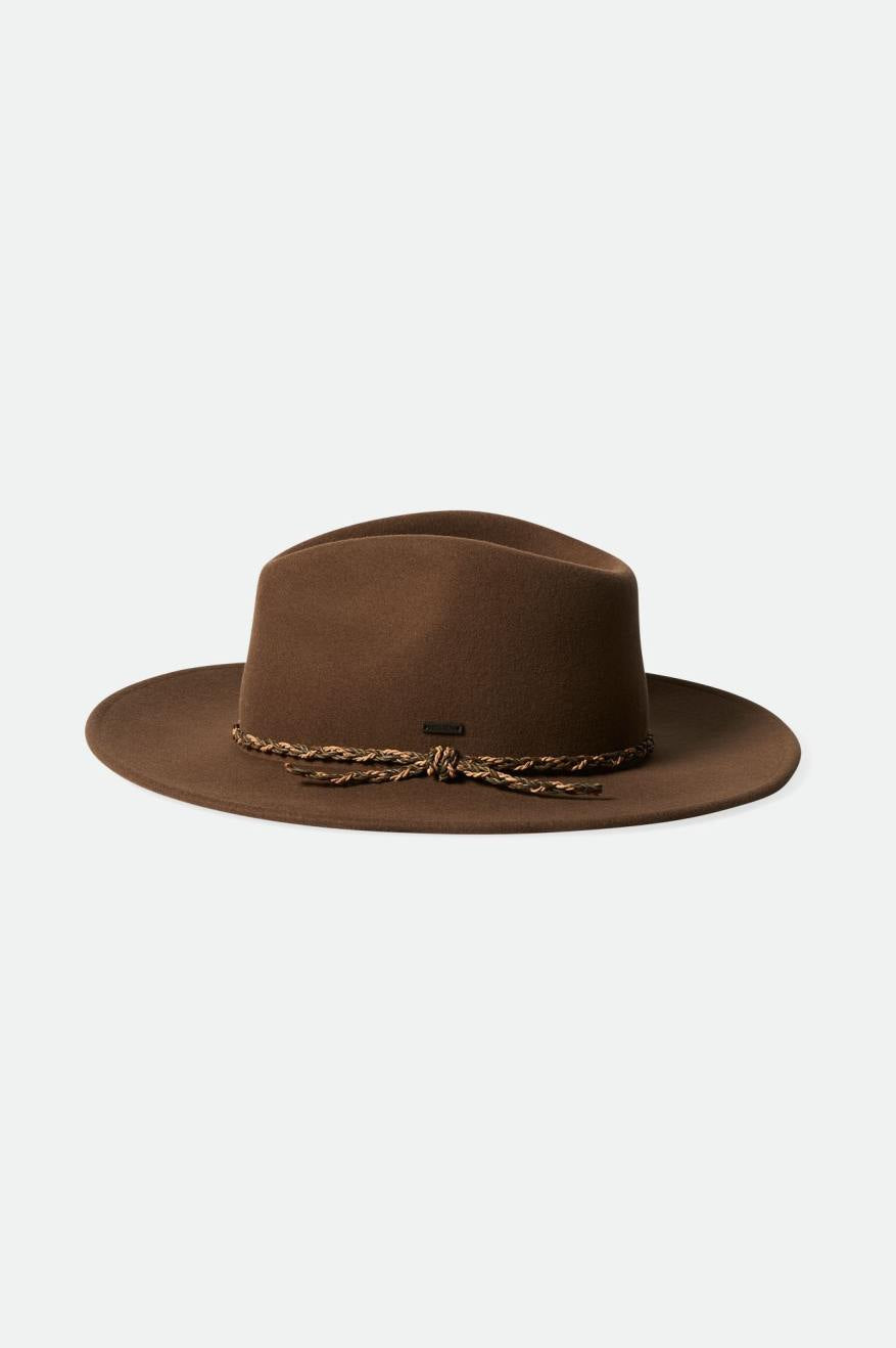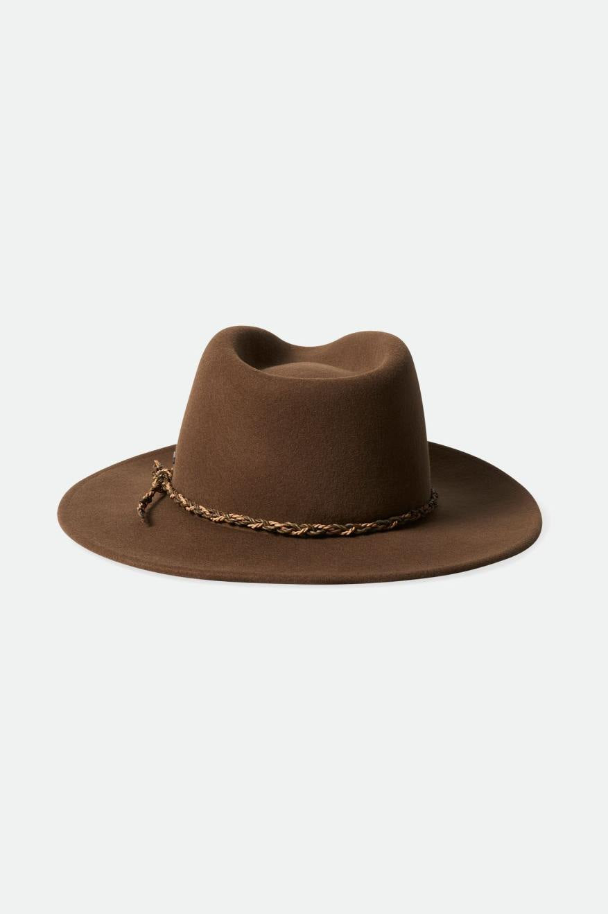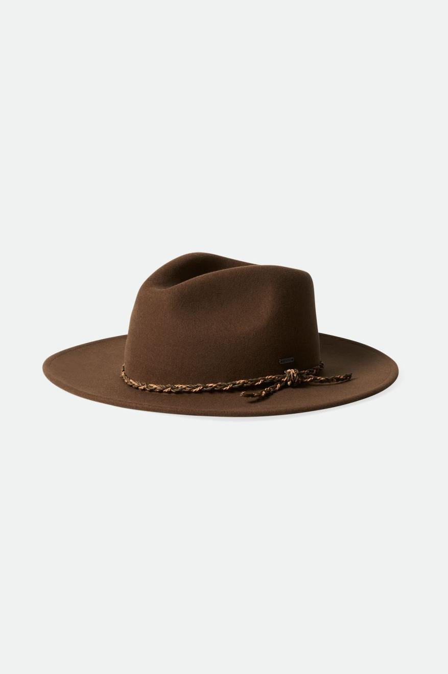 This fedora combines the classic styling of our Messer silhouette with a slightly larger brim for a Western aesthetic. Detailed with a premium braided leather band and metal headwear plaque. Dial in the perfect fit with our hidden size adjuster. Constructed from 100% responsibly sourced wool felt, a voluntary standard that ensures the ethical treatment of the animals from which it is sourced.
