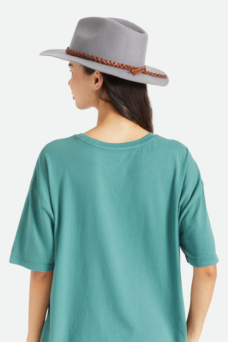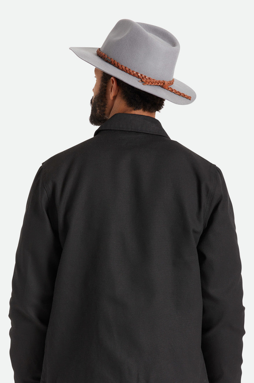This fedora combines the classic styling of our Messer silhouette with a slightly larger brim for a Western aesthetic. Detailed with a premium braided leather band and metal headwear plaque. Dial in the perfect fit with our hidden size adjuster. Constructed from Australian wool.