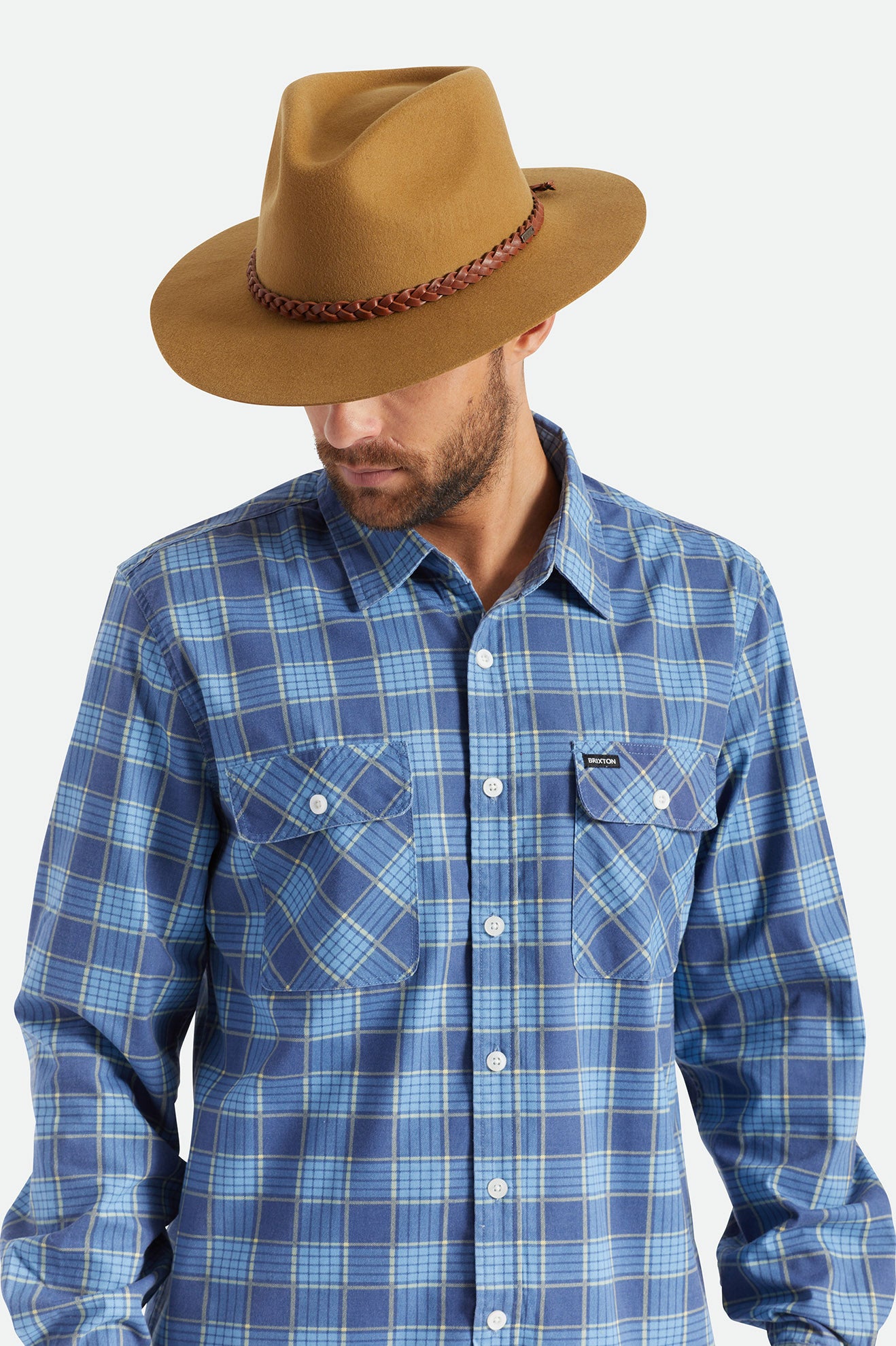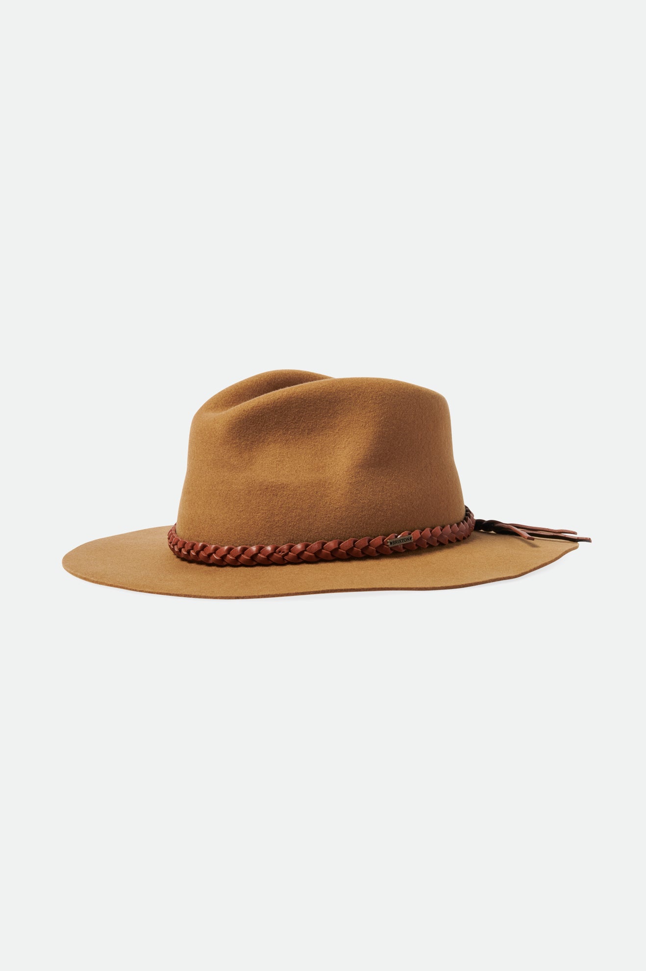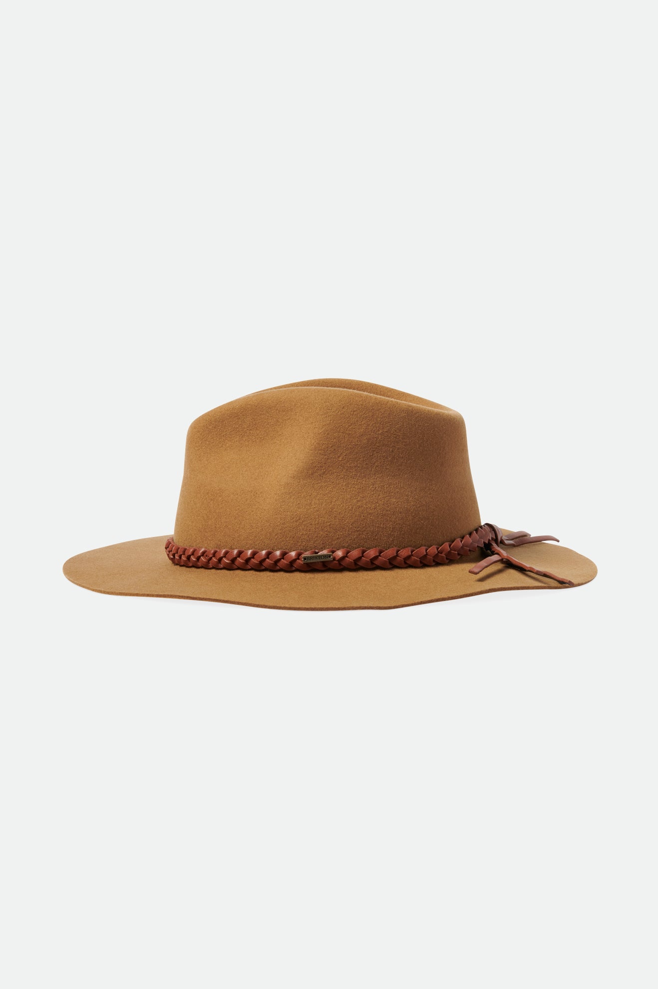 The Messer Western Fedora combines the classic styling of our Messer Fedora with a slightly larger brim to deliver a Western aesthetic. Premium details like a braided leather band and metal headwear plaque add intricate depth. Customize your fit with the adjustable Velcro strap under the inner sweatband.