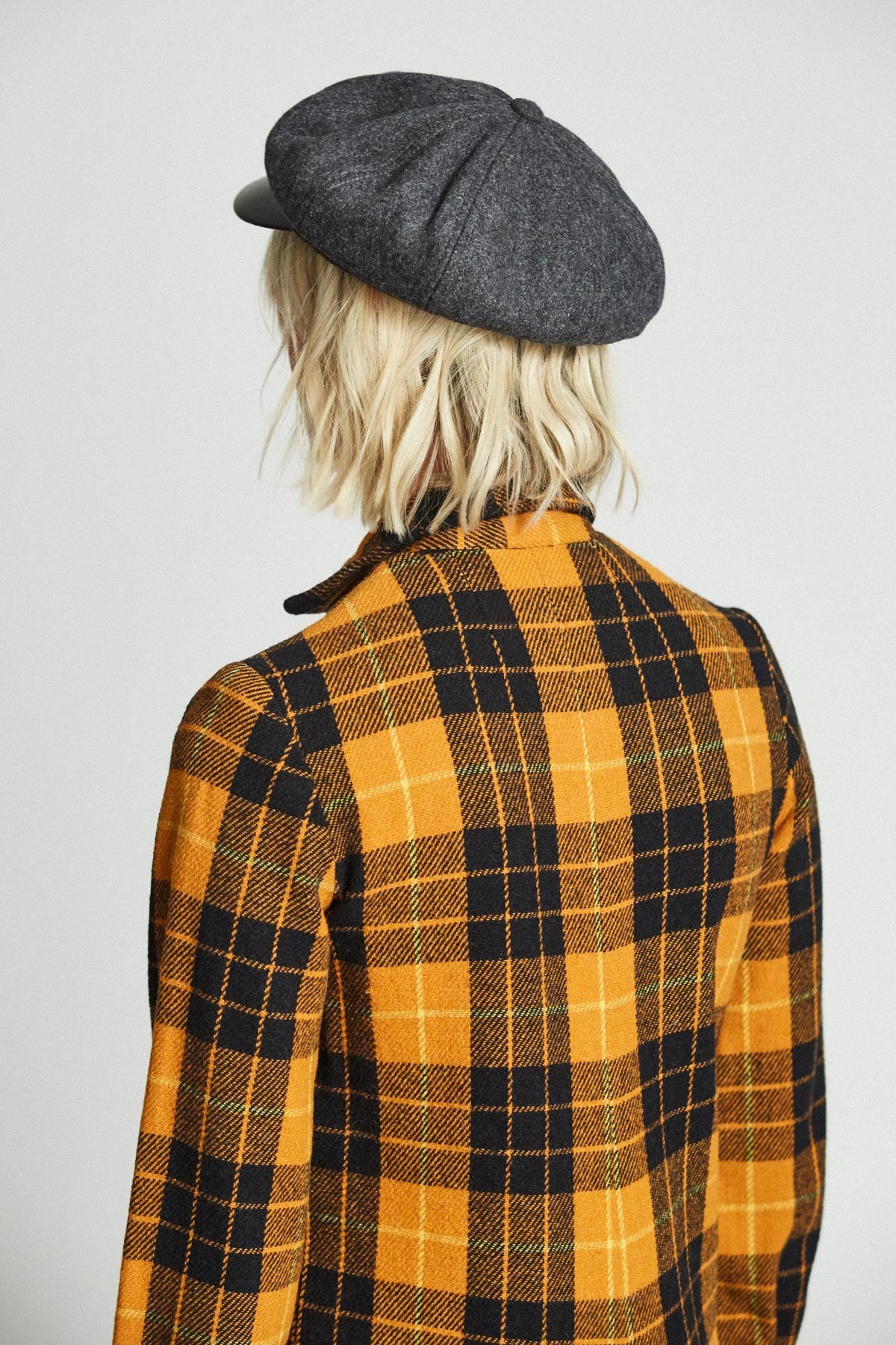 The Montreal cap is a men's unisex, eight-panel cut-and-sew moto-inspired cap. Color: Grey/Black.